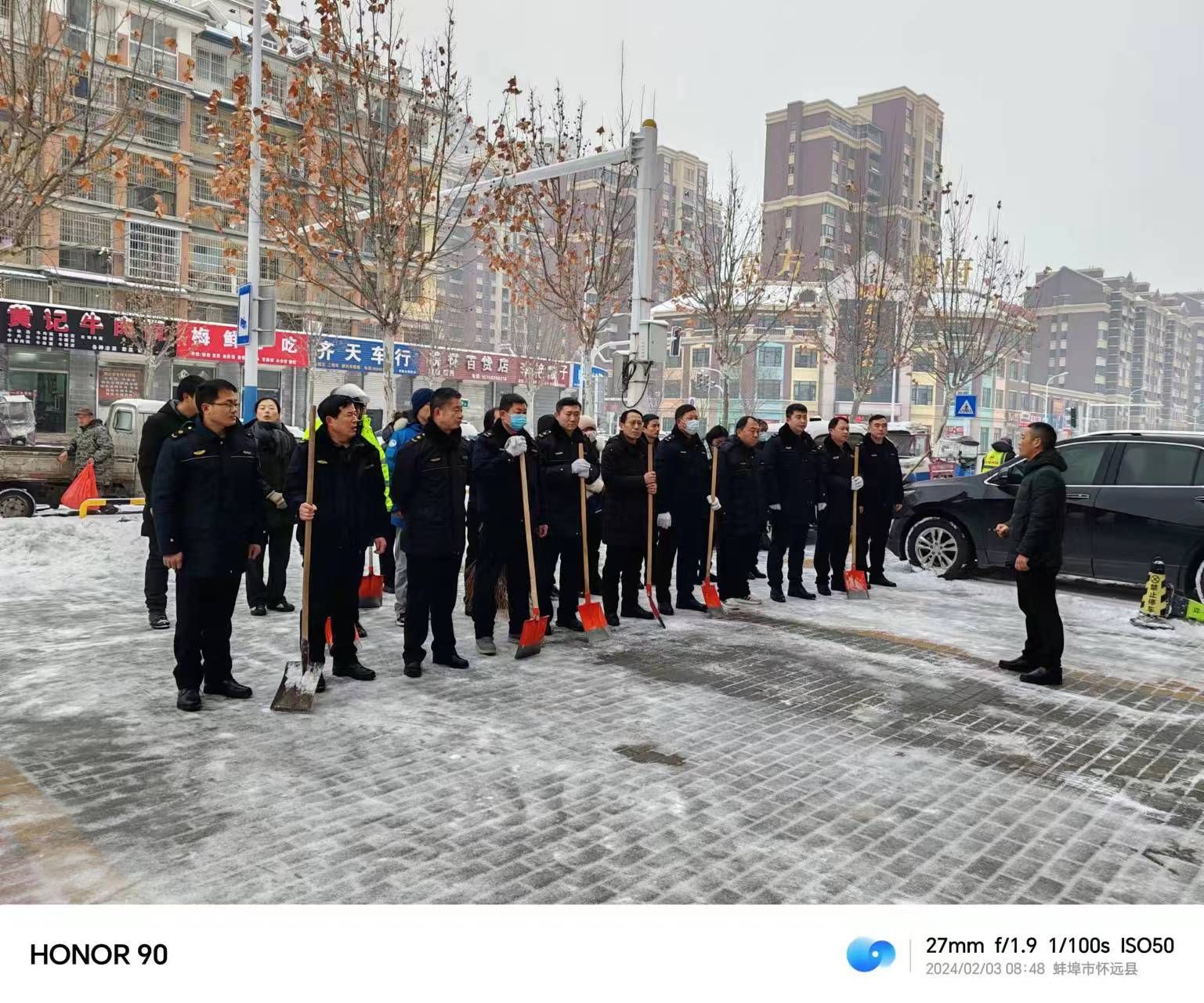 蚌埠文明網訊(孫敏)連日來,持續的降溫、降雪、冰凍給城市群眾生活帶來了極大影響。面對極端天氣,懷遠縣城市管理局以雪為令、迅速應對,第一時間啟動低溫雨雪冰凍災害天氣應急預案。組織局機關、大隊、市政、環衛所、保潔公司全體人員走上街頭、橋面,日夜奮戰,疏堵保暢,抗擊冰雪,全力保障暴雪天氣道路暢通,百姓出行安全。截止目前,已累計出動環衛工人和執法人員1500人次,撒布車8輛,掃雪車2輛,鏟雪車12輛,鐵鍬掃把等除雪工具1000余件,撒播工業鹽、融雪劑等融雪物資170噸。