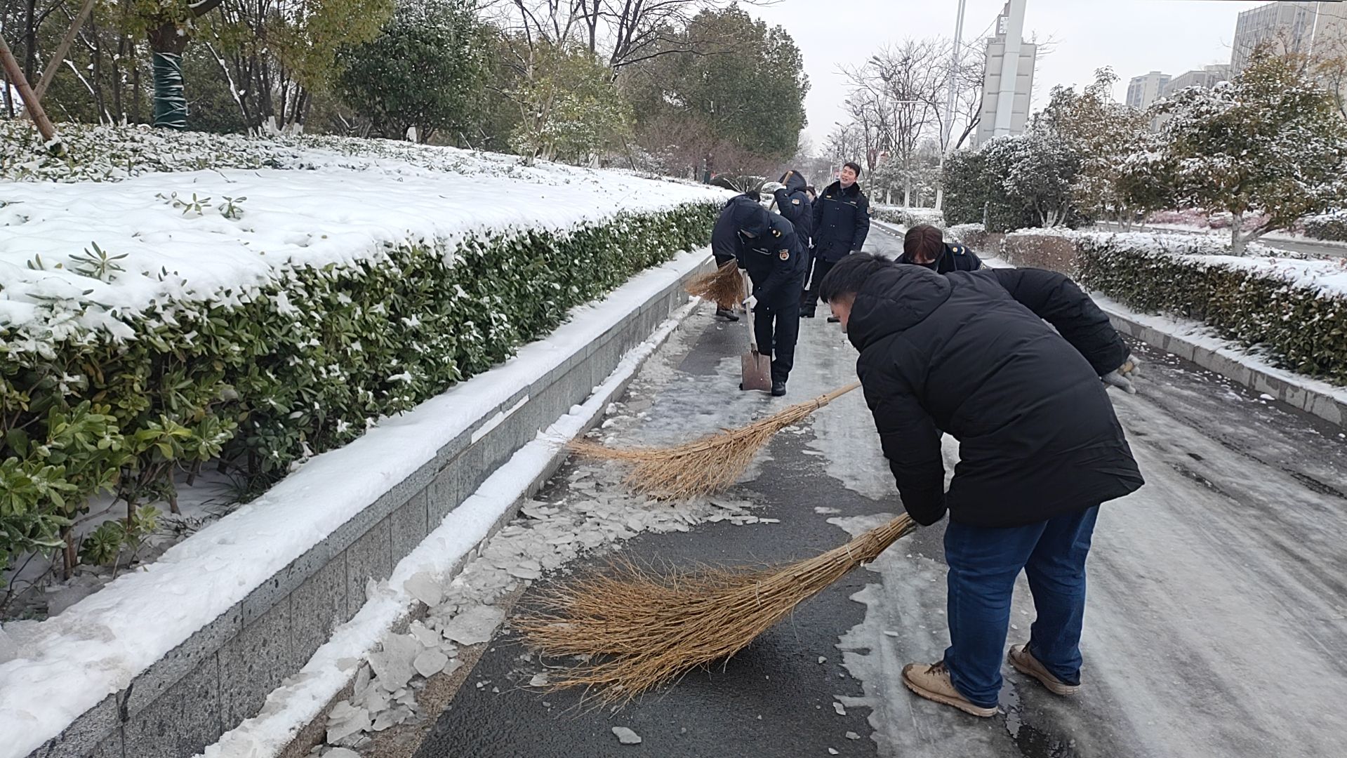 機關人員清掃次干道冰雪