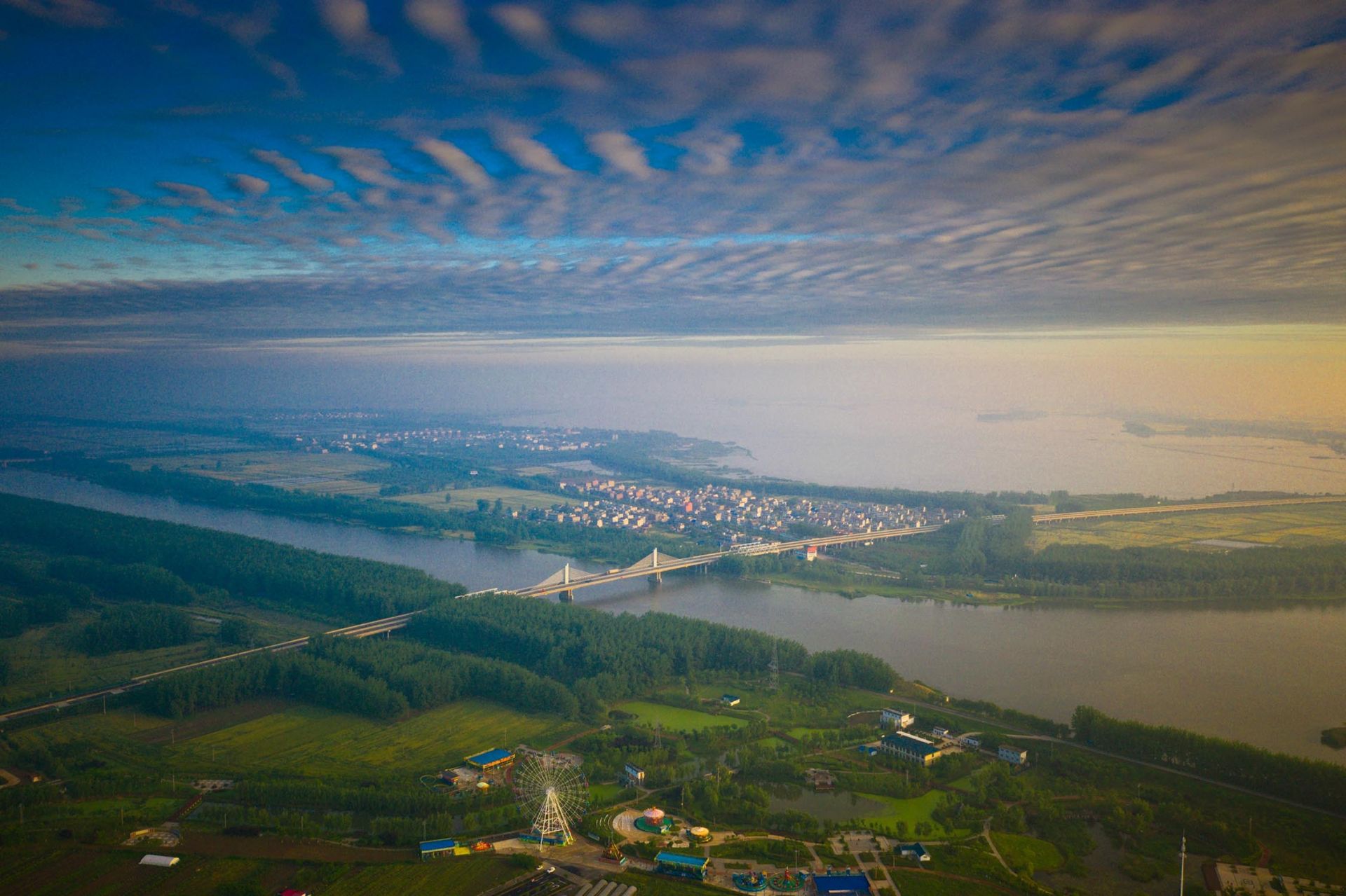 初夏,具有皖北最美水鄉之譽的安徽省蚌埠市五河縣迎來了最為美麗的時節,美麗的天空云朵變幻,五條河流交相輝映,云水相間,氣象萬千。 (通訊員 李向前)