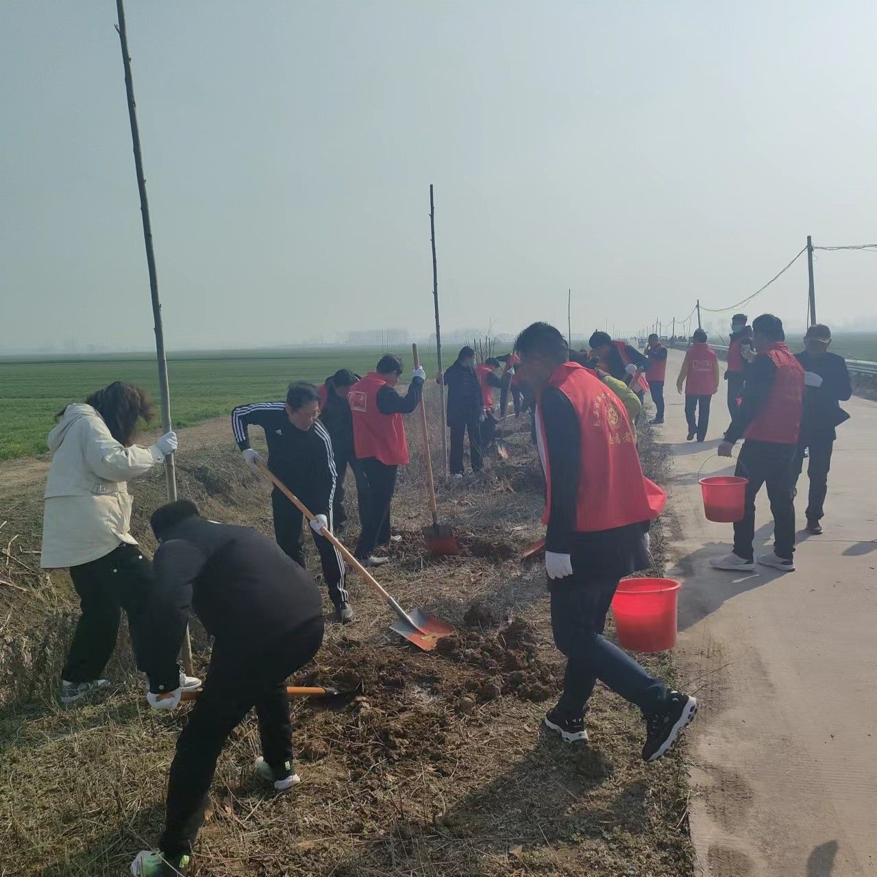 3月12日,陽光明媚,春風送暖。在懷遠縣包集鎮高皇村新硬化的道路上,由鎮黨委政府統一組織,多部門志愿者聯合開展的義務植樹活動火熱進行。這是該鎮在植樹節到來之際開展的規模最大的義務植樹活動。
