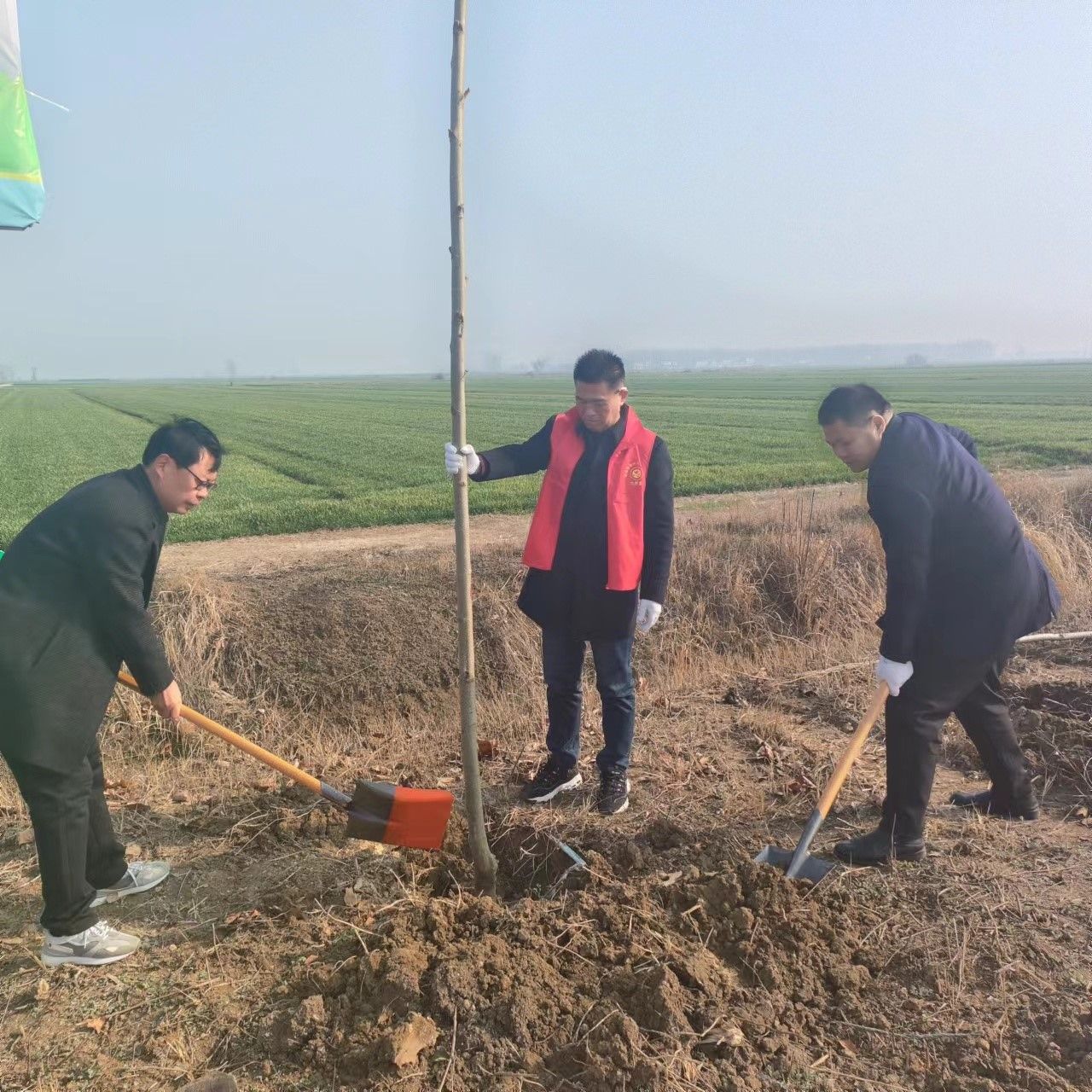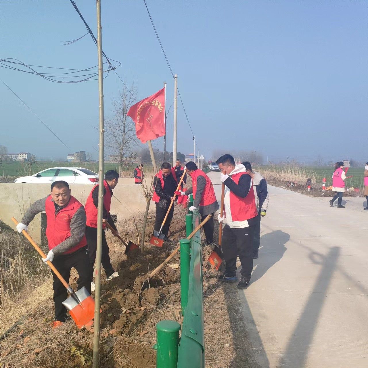 高皇村是在建的美麗鄉村,“金山銀山不如綠水青山”的發展理念已經植入了高皇人的心中。該村利用當前植樹造林的大好時機,著力實施綠化工程。為了助力高皇村生態文明建設,包集鎮黨委政府號召鎮直機關廣大志愿者到高皇村開展義務植樹活動。鎮人大、林業站、退伍軍人服務站、共青團、婦聯、財政所等部門的志愿者們紛紛來到高皇村植樹現場,投入義務植樹活動。挖掘機在前面開挖樹穴,灑水車隨著植樹隊伍向前移動,志愿者們密切搭配組合,扶樹、澆水、培土,形成合力,加快植樹進度。鎮人大負責包集鎮美麗鄉村建設的執行工作,人大負責同志和多名縣鎮人大代表對此次義務植樹活動展現出了超高的關注度和參與度,并對接縣人大組織開展的“高皇村義務植樹”鄉村行活動。鎮林業站負責同志現場進行技術指導,保障新栽樹木的存活率。鎮退伍軍人服務站組織的志愿者們發揚特別能吃苦、特別能戰斗的優良作風,干勁足,行動快,軍旗在植樹現場迎風招展,獵獵飄揚。共青團和婦聯的志愿者們灑下一串串汗水,留下一株株青春紀念樹,讓他們在這個春天里親手栽下的小樹苗為青春留下一抹綠色。