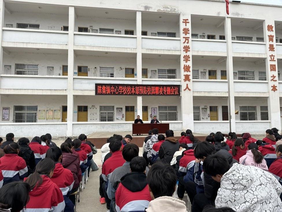 為進一步增強在校師生法治意識,幫助學生塑造法治思維,弘揚法治精神,3月18日上午,陳集鎮平安辦聯合司法所開展法治教育進校園宣講活動。本次活動以“遠離校園霸凌 護佑健康成長”為主題,使全校廣大師生更進一步認識校園霸凌的危害性,樹立并鞏固抵制校園霸凌的統一思想。