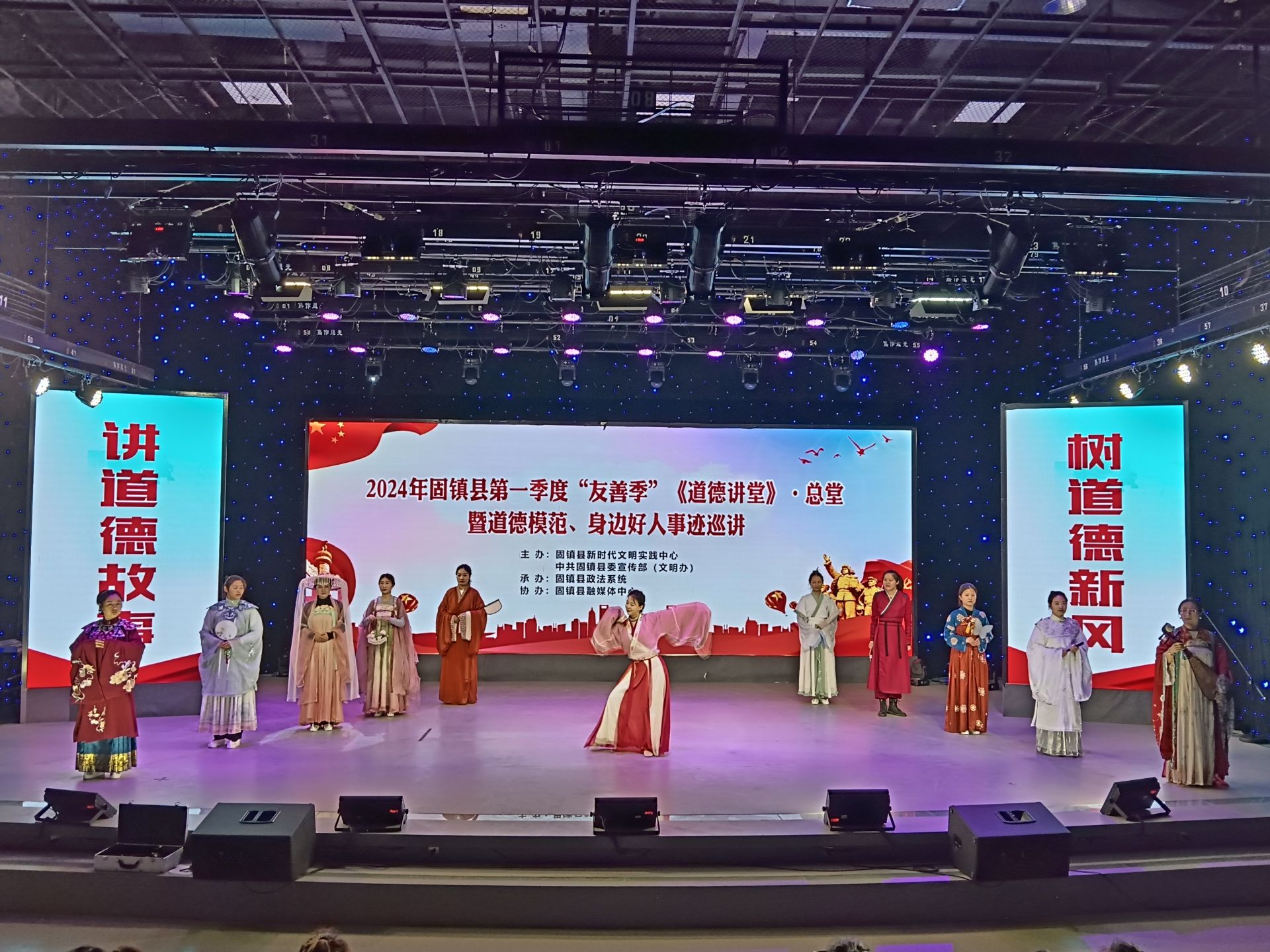 本次《道德講堂》總堂由固鎮縣新時代文明實踐中心、中共固鎮縣委宣傳部(文明辦)主辦、固鎮縣政法系統承辦;固鎮縣融媒體中心協辦,縣直各文明單位分管負責人、身邊好人代表和演職人員120余人參加。