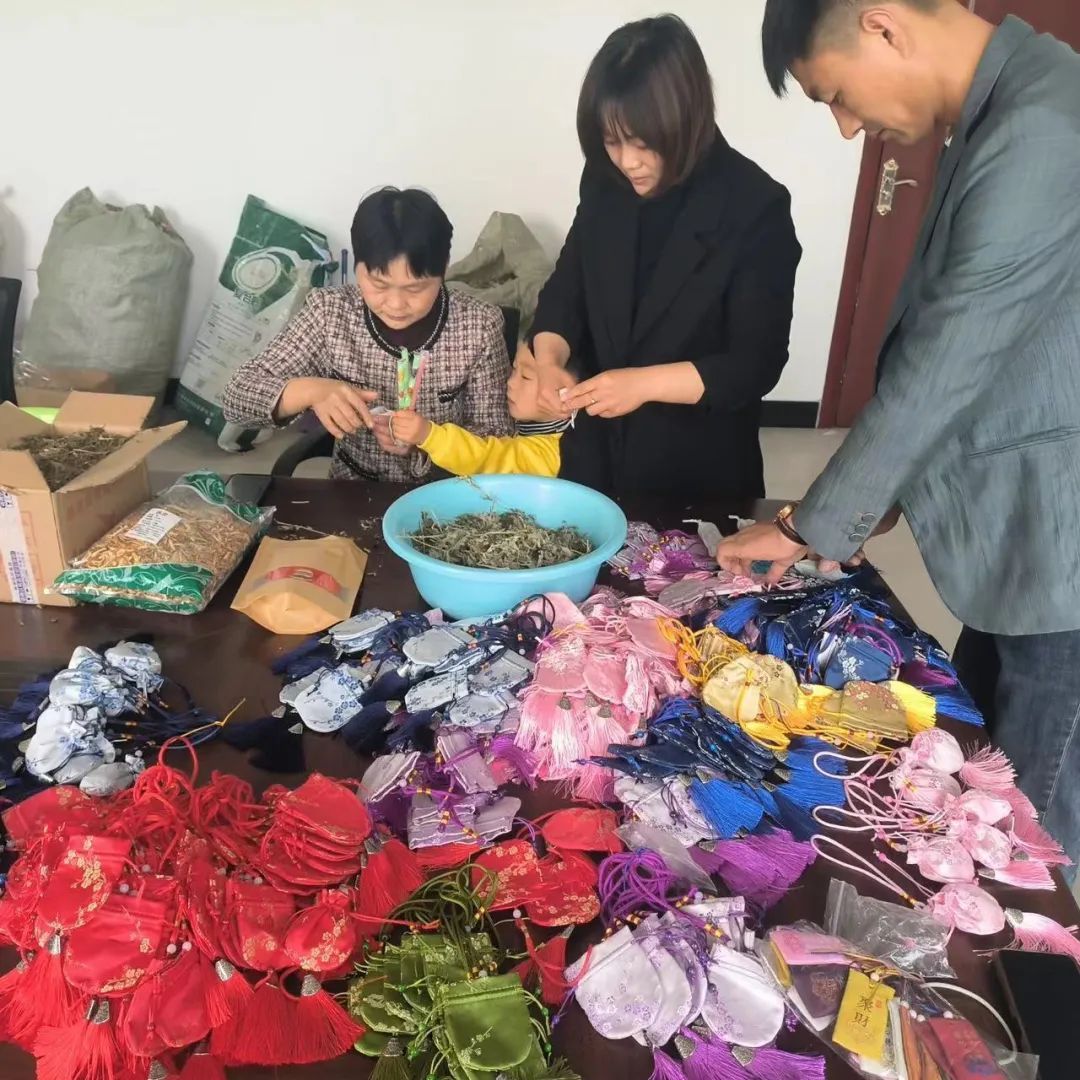為進一步擴大艾草經濟價值,泗河村帶領村里老百姓走上了探索艾草初加工的道路。利用黨群服務陣地、農戶庭院等創辦“艾草工坊”,開展艾草香包、艾枕、艾墊、艾柱、艾絨加工培訓,吸納農村剩余勞動力、低收入農戶就地就近就業。并通過泗河村村集體與村民簽訂艾草、艾產品回收協議,為帶動村集體、群眾致富提供了保障。截至目前,泗河村已建立集體“艾草作坊”1個、庭院“艾草作坊”16個,可生產艾草香包、艾枕、艾墊等13種艾產品,2023年度艾產品銷售金額達30萬元,泗河村“庭院經濟”得到進一步壯大。