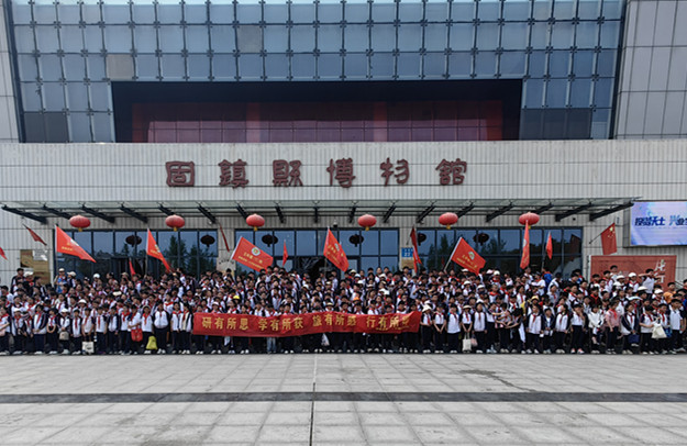“穿越”之旅。醉”美櫻花之旅后,同學們又來到固鎮縣博物館。進入大門,“漢興之地,勝利之城”八個大字讓人油然生出敬畏之心。在工作人員的引領介紹下,同學們認識了古代的各種石器、玉器、鐵器、青銅器、陶瓷器等,讓學生印象最深刻的是距今數十萬年的“固鎮水牛”頭骨化石及距今有4500多年的帶有“日月山”刻畫符號的大口尊。學生透過博物館“一眼千年”,感受到家鄉歷史文化的悠久,自豪感油然而生。