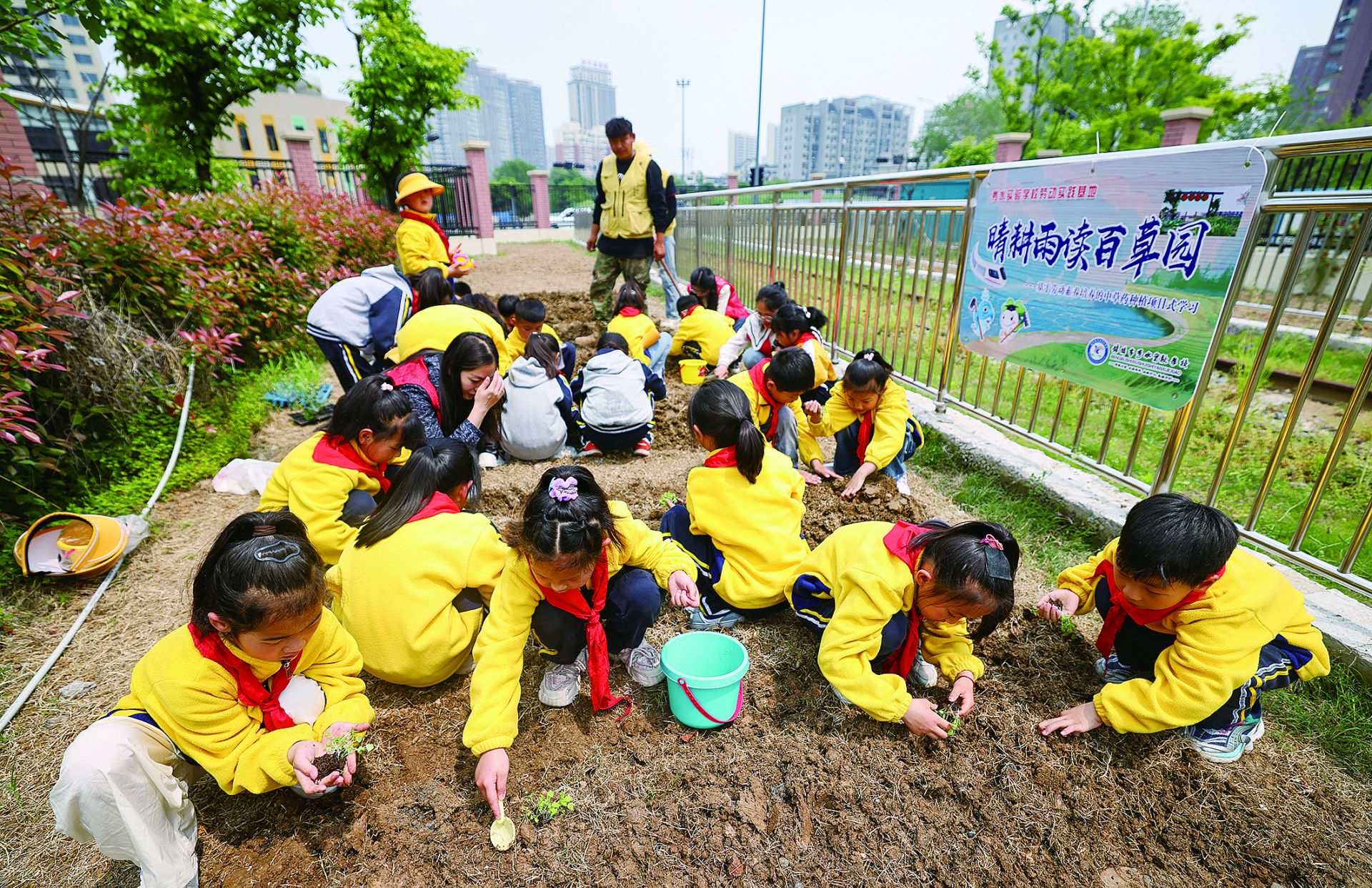 當天上午,在秀水實驗學校“晴耕雨讀百草園”內,來自該校二年級的同學正在移栽薄荷,這個園子位于校園北面,雖然面積不大,但種植的中藥品種不少,包括艾草、金銀花、薄荷、芍藥及百合,通過精心挑選的這些藥用植物,秀水實驗學校希望激發學生們對自然的感恩之心以及熱愛和保護地球的意識。
