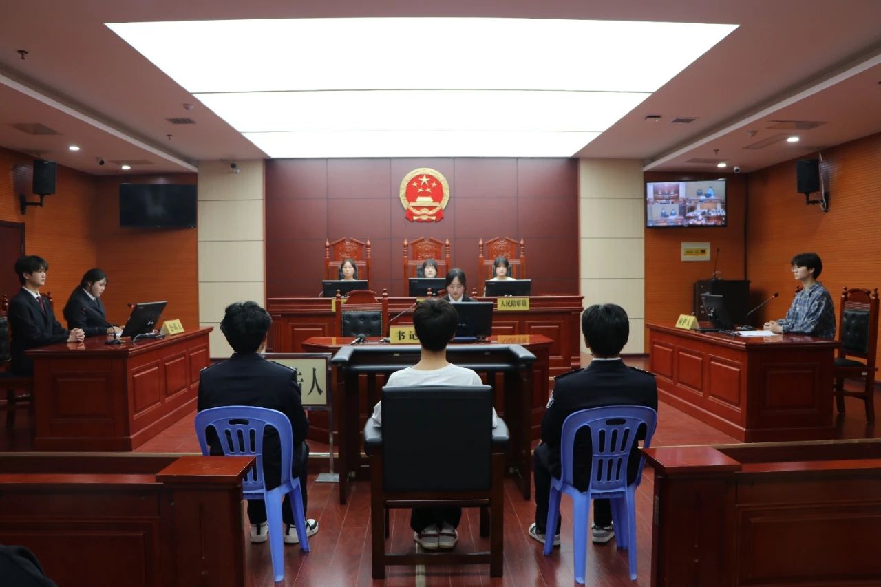 在莊嚴(yán)的審判庭內(nèi),隨著清脆的法槌聲響起,活動推向高潮。10名學(xué)生身穿制服,化身“審判長”、“人民陪審員”、“書記員”、“公訴人”、“辯護(hù)人”、“法警”等角色,全情投入、規(guī)范完整地還原了一起未成年人校園欺凌刑事案件的庭審現(xiàn)場。從庭審準(zhǔn)備、法庭調(diào)查、法庭辯論、被告人最后陳述到當(dāng)庭宣判,每個環(huán)節(jié)同學(xué)們都聚精會神地融入角色。模擬法庭活動讓同學(xué)們沉浸式體驗了莊重和肅穆的法庭現(xiàn)場,強(qiáng)烈感受到了神圣不可侵犯的法律威嚴(yán)。