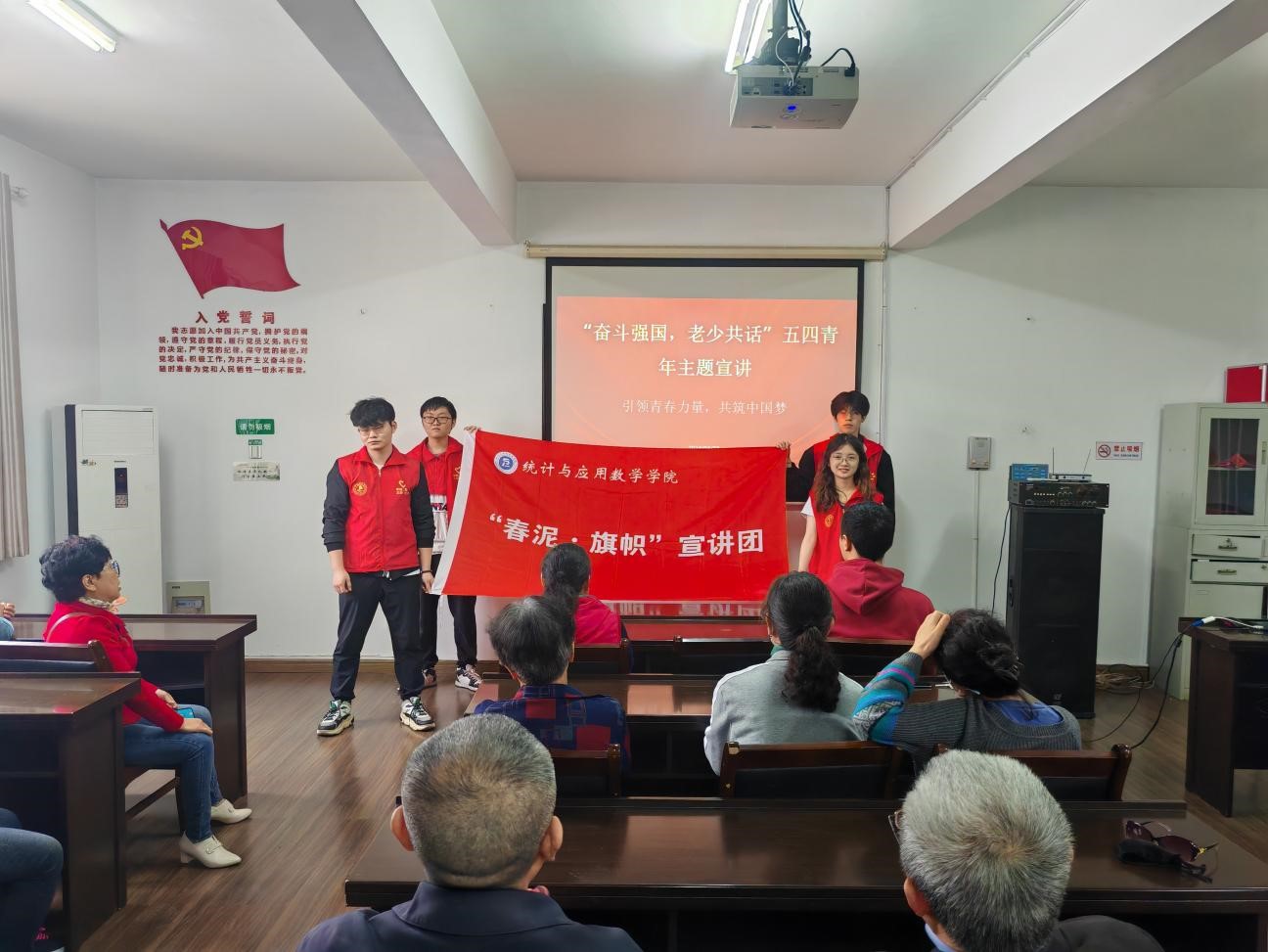 在五四青年節來臨之際,安徽財經大學走進香都新時代文明實踐站與黨員們開展“奮斗強國 老少共話”五四青年主題宣講活動,讓大家在思想上受到一次革命性的洗禮,增強歷史使命感、民族責任感。 李敏 攝