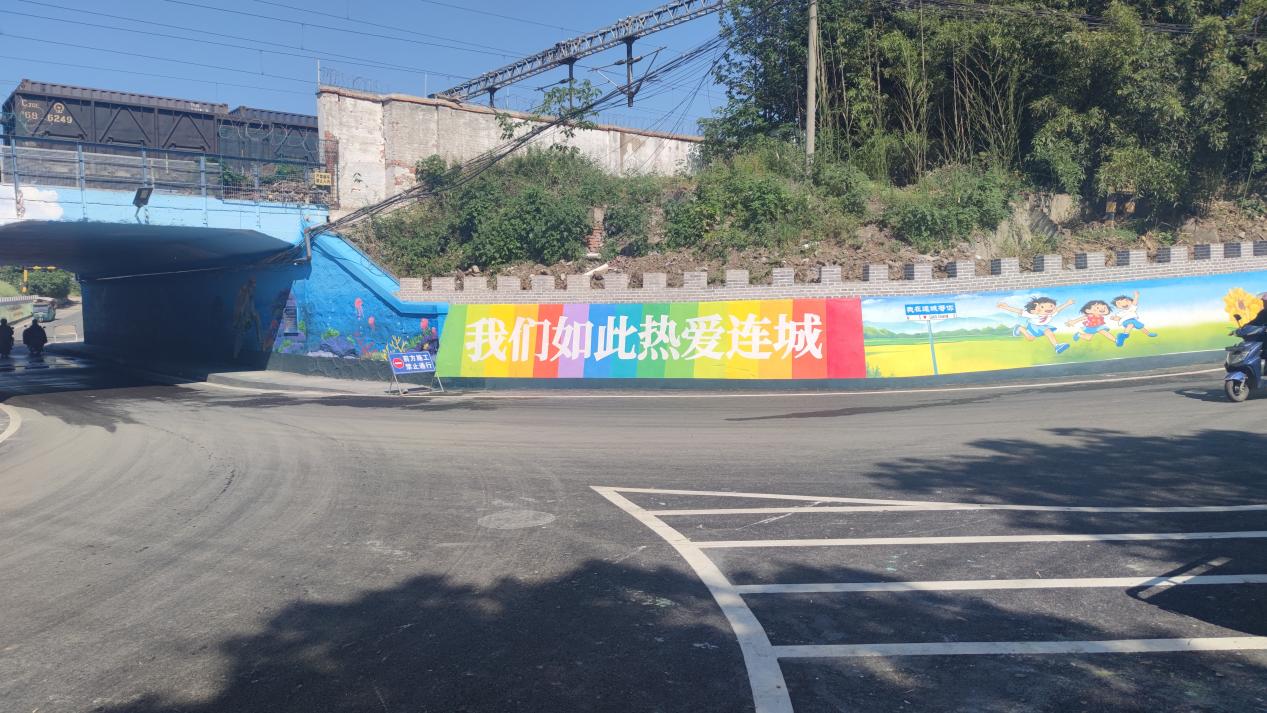 一墻一風景,一墻一文化,走過固鎮(zhèn)縣連城鎮(zhèn)鐵路下穿道,不經(jīng)意間就能與斑斕的墻繪撞個滿懷,“我們?nèi)绱藷釔圻B城”,創(chuàng)意墻繪給連城鎮(zhèn)增添了一份色彩和趣味。