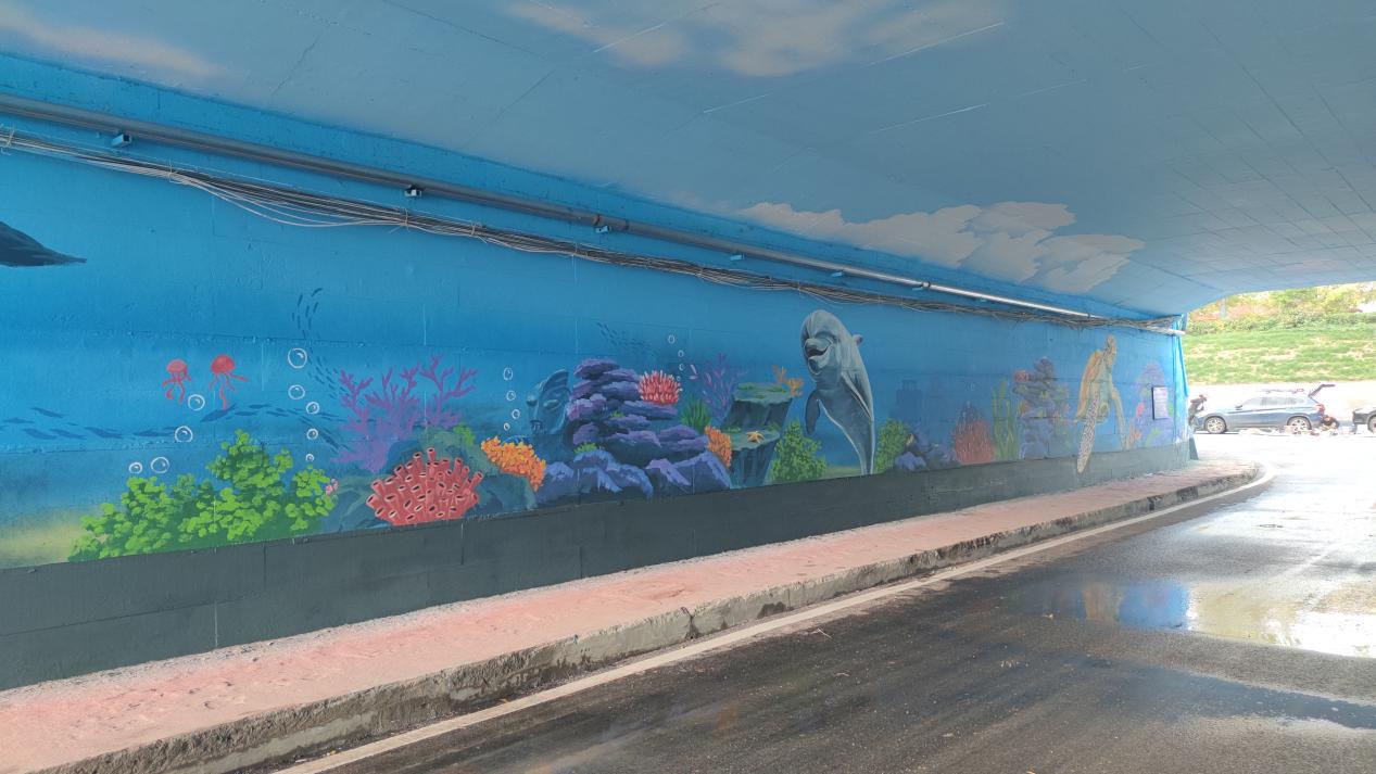 固鎮(zhèn)縣連城鎮(zhèn)鐵路下穿道路兩側(cè)上,繪有經(jīng)典動漫角色、海洋、動物、人文語句等元素。充滿趣味的墻繪,帶著記憶的語句,讓冰冷的道路生動活潑起來。在墻繪創(chuàng)作之初,便吸引了不少路人的關(guān)注,隨著墻繪的陸續(xù)完成,大家紛紛駐足打卡留念。別具風格的特色文化墻,使連城的面貌煥然一新。