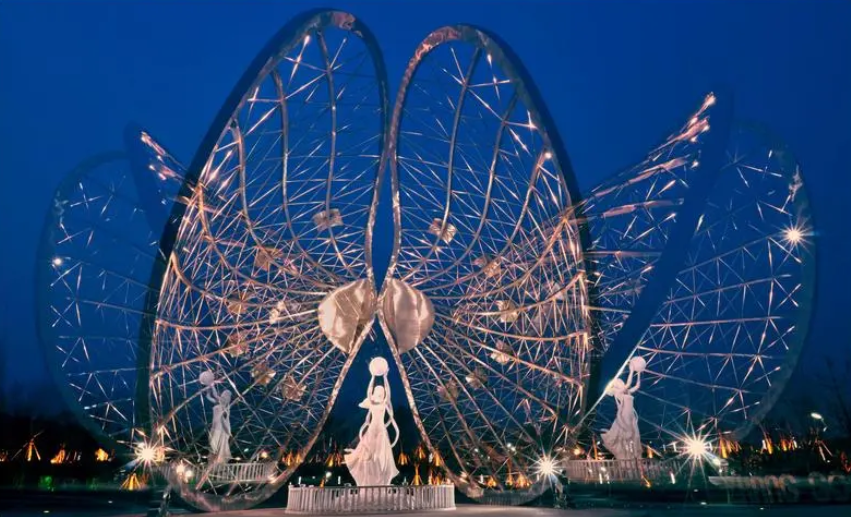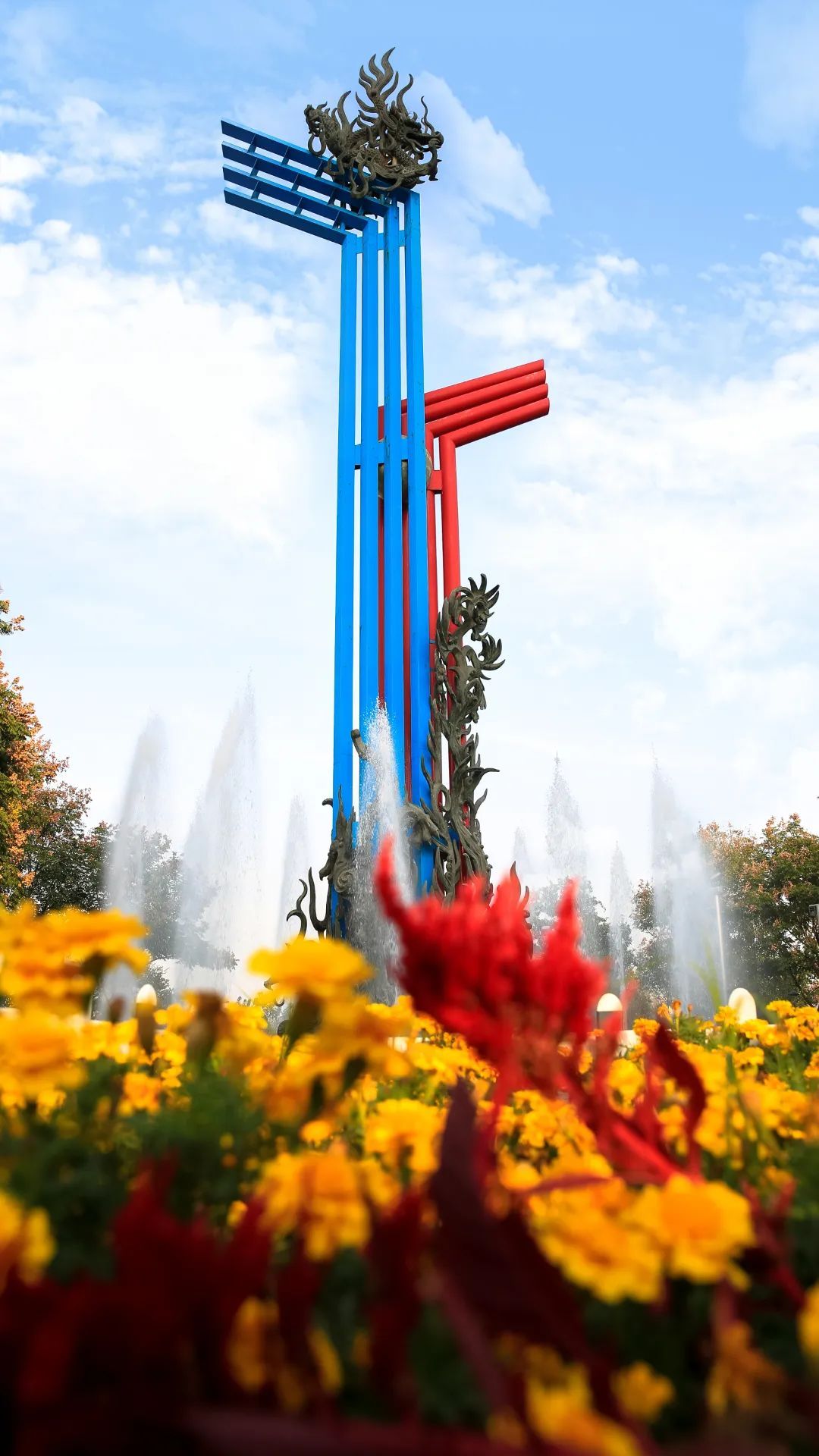 當噴泉開放的時候,這四方神獸,更是栩栩如生、活靈活現。