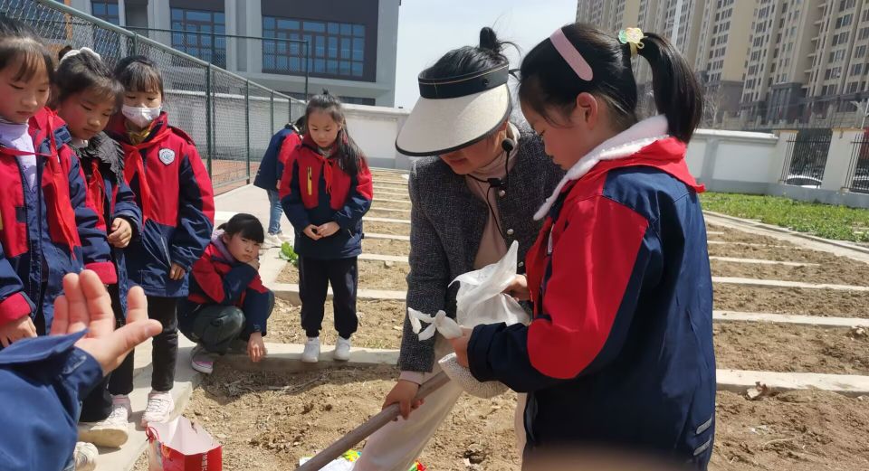 實驗小學澮河路校區把校內種植園分到班級,讓班級師生共同管理自己的一畝三分地。老師帶領學生們翻土、播種,體驗收獲的喜悅。大家雖然滿頭大汗,但熱愛勞動、尊重勞動、崇尚勞動意識也在實踐中不斷增強。