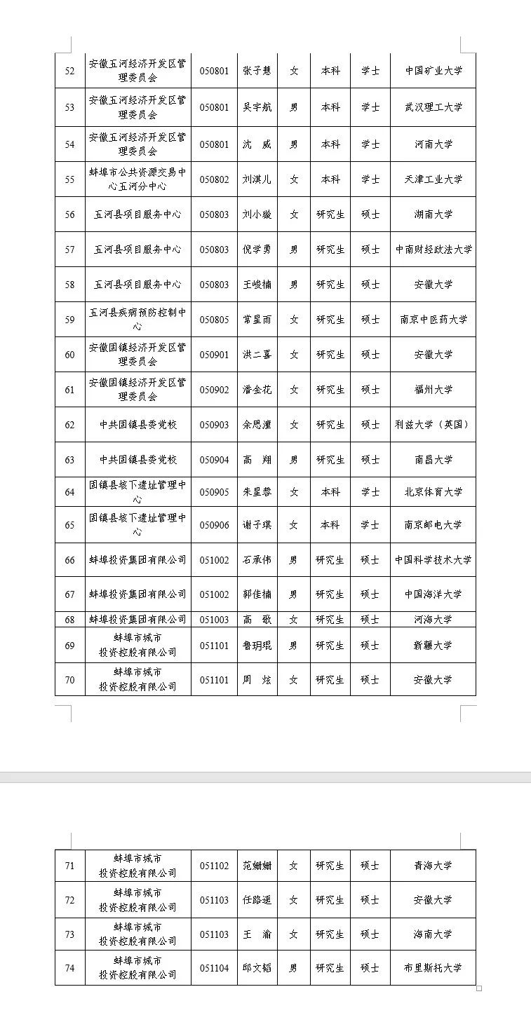 附件:蚌埠市事業單位、國有企業引進緊缺人才擬聘用人員名單(第一批)