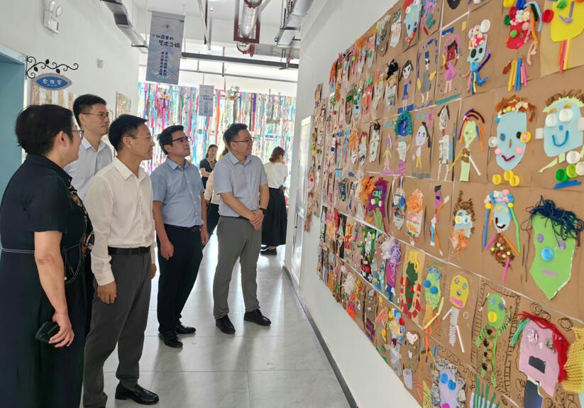 在張公山幼教集團(tuán)理想城分園,張斌一邊聽(tīng)取園區(qū)負(fù)責(zé)人的介紹,詳細(xì)了解幼兒園辦學(xué)理念、開(kāi)園來(lái)招生辦學(xué)及教師配置情況,一邊走訪觀賞幼兒正在進(jìn)行的各類趣味活動(dòng),感受園內(nèi)滿是歡聲笑語(yǔ)的童趣,并為幼兒贈(zèng)送禮物表示節(jié)日慰問(wèn)。在淮海小學(xué),張斌一行觀看了學(xué)生們表演的“環(huán)保時(shí)裝秀”、“變廢為寶”手工制作,與學(xué)生們現(xiàn)場(chǎng)交流互動(dòng),贈(zèng)送文具等慰問(wèn)禮物。