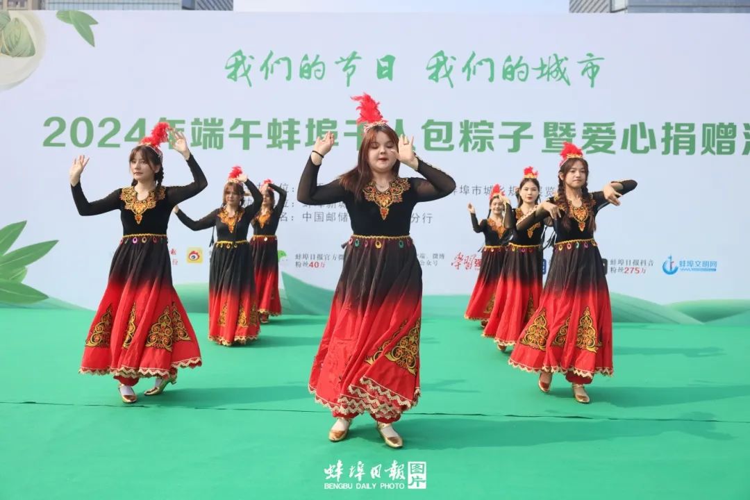 活動在安徽財經大學新疆籍學生表演的舞蹈《石榴花開》中拉開帷幕。端午佳節承載著團圓安康的美好祝愿,是中華兒女共同的文化紐帶和情感寄托。千人包粽子活動今年是第二屆,參與面越來越廣,影響力日益增強,吸引了小朋友、中青年和老人等各個年齡段的一千余位市民的積極參與,現場歡聲笑語, 新城濱湖學校的小朋友還帶來了一場精彩的文藝演出。