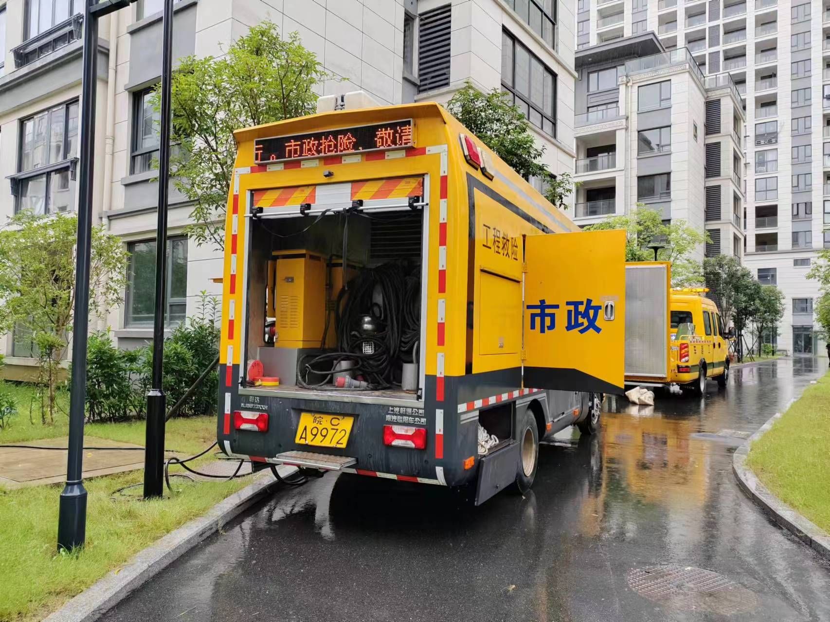 蚌埠市城市管理局市政搶險突擊隊由10名隊員、一臺應急電源泵車(抽排量1600立方米/小時),一臺工程搶險車組成。6月26日上午,根據當地防汛指揮部指示,蚌埠城管市政搶險突擊隊火速趕赴黃山市災情最為嚴重的歙縣,在該縣碧龍灣花園小區,聯合武警、消防開展地下車庫積水搶險抽排工作。