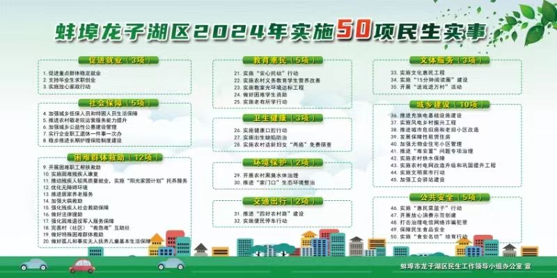 蚌埠文明網訊(融媒體記者 王立春)日前,記者從龍子湖區發改委獲悉,2024年,該區民生實事實施方案共涵蓋8大類28項40個小項。具體來看,方案包括促進就業、困難群體救助、教育惠民、衛生健康、交通出行、文體服務、城鄉建設及公共安全類等重點內容。