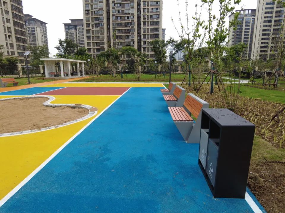 據了解,這座口袋公園建設面積約 4400 平方米,總投資約 150 萬元。記者走進公園,首先映入眼簾的是郁郁蔥蔥的景觀綠化,花草繁盛,仿佛置身于一個小型的植物園。彩色瀝青步道蜿蜒其中,宛如一條彩帶,將各個景觀節點串聯起來。沿著步道漫步,時不時能看到孩子們在兒童游樂設施上歡快地玩耍,笑聲回蕩在整個公園;老人們則在休閑廊架下悠然自得地聊天,享受著這愜意的時光;年輕人在健身,展現著青春的活力。