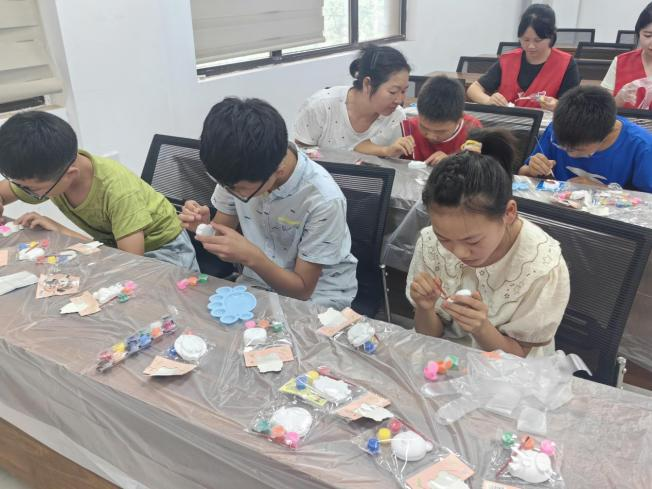 為了豐富青少年的暑期生活,提高大家的動(dòng)手能力,激發(fā)想象力和創(chuàng)造力,志愿者們?yōu)檩爡^(qū)青少年準(zhǔn)備了水拓畫(huà)的拓印、石膏娃娃模型繪畫(huà)、扭扭棒制作等手工制作活動(dòng),一方面讓他們體驗(yàn)到水拓畫(huà)的新穎創(chuàng)作藝術(shù),開(kāi)闊他們的眼界,另一方面,也讓他們?cè)谟螒蛑袑W(xué)習(xí)生活中常見(jiàn)的科學(xué)知識(shí),提升青少年對(duì)科學(xué)知識(shí)的興趣。