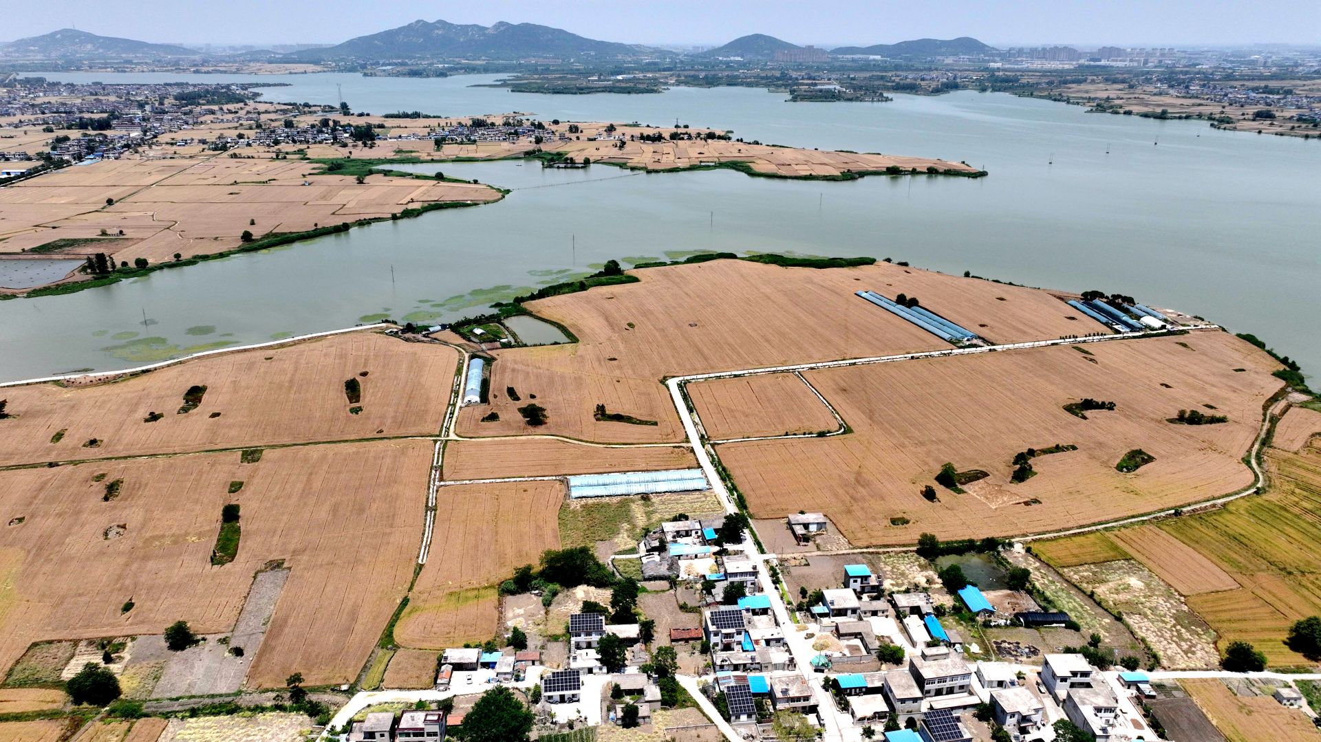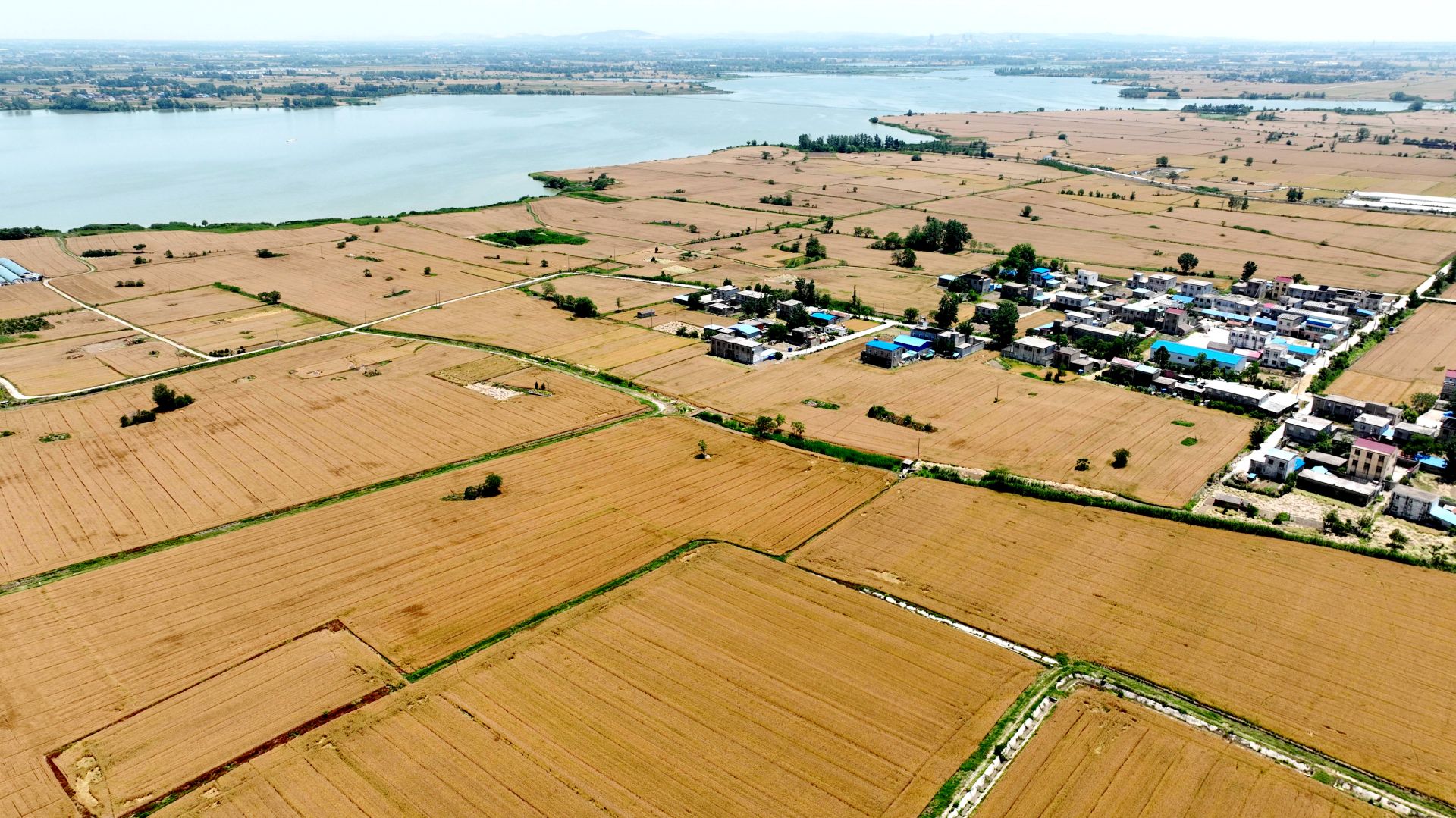 5月23日中午,航拍禹會區馬城鎮天河岸邊的麥田,金黃麥穗給大地披上了金裝,呈現出一派豐收景象。