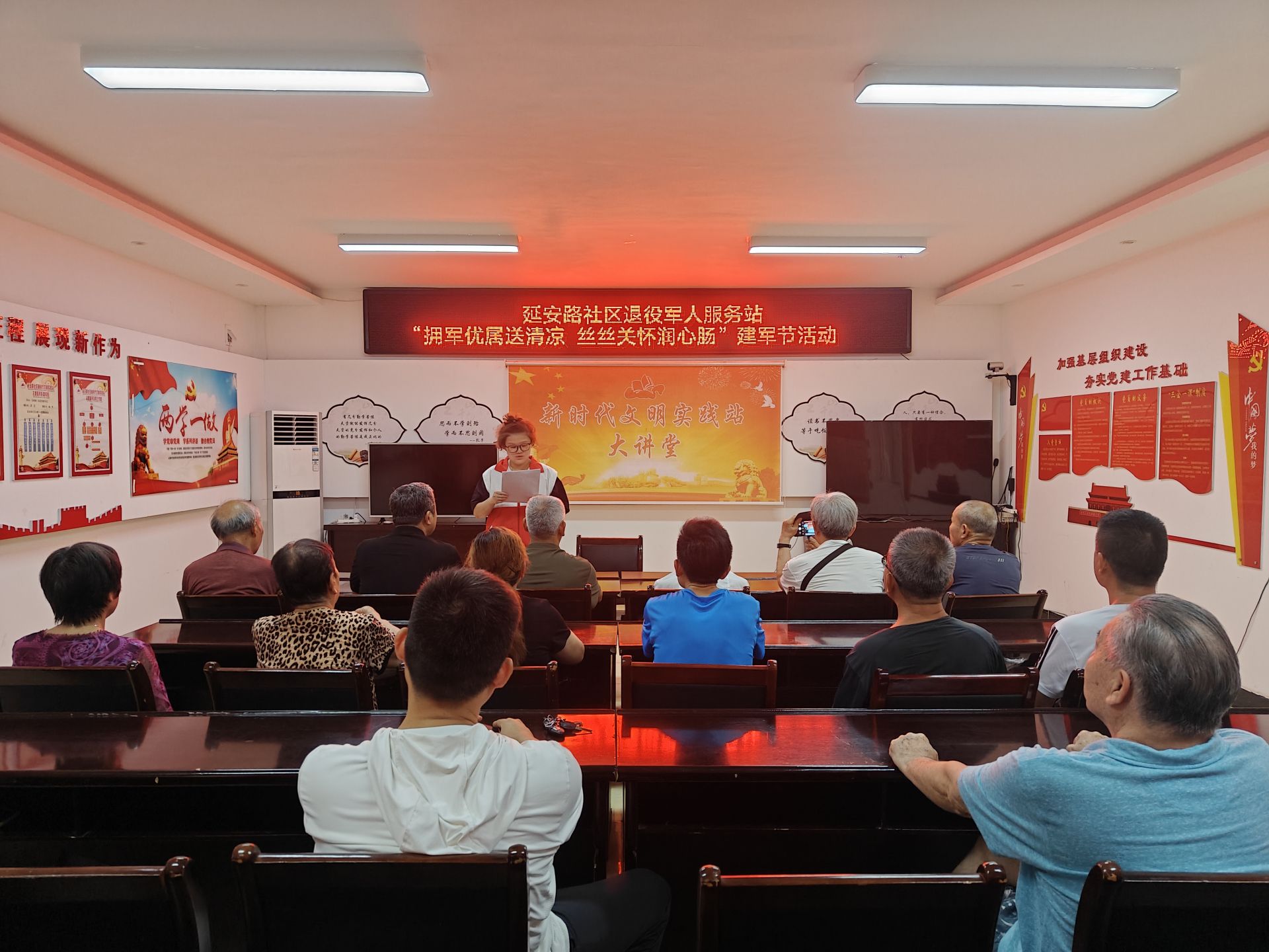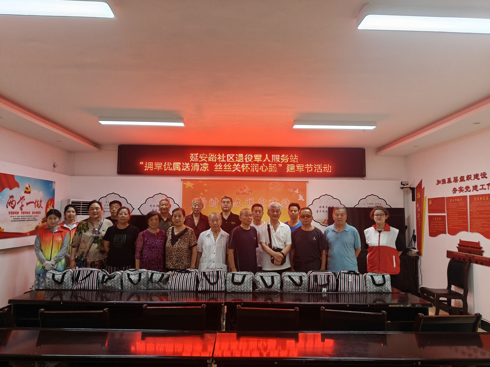 退役軍人是黨和國家的寶貴財富,更是社區建設不可或缺的重要力量。為了更好地繼承和發揚革命優良傳統,切實營造社區擁軍優屬、擁政愛民的良好氛圍,8月1日,延安路社區退役軍人服務站組織開展“擁軍慰問送清涼 絲絲關懷潤心腸”喜迎八一活動。