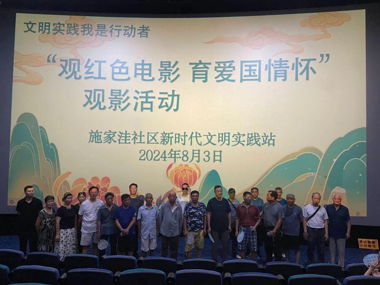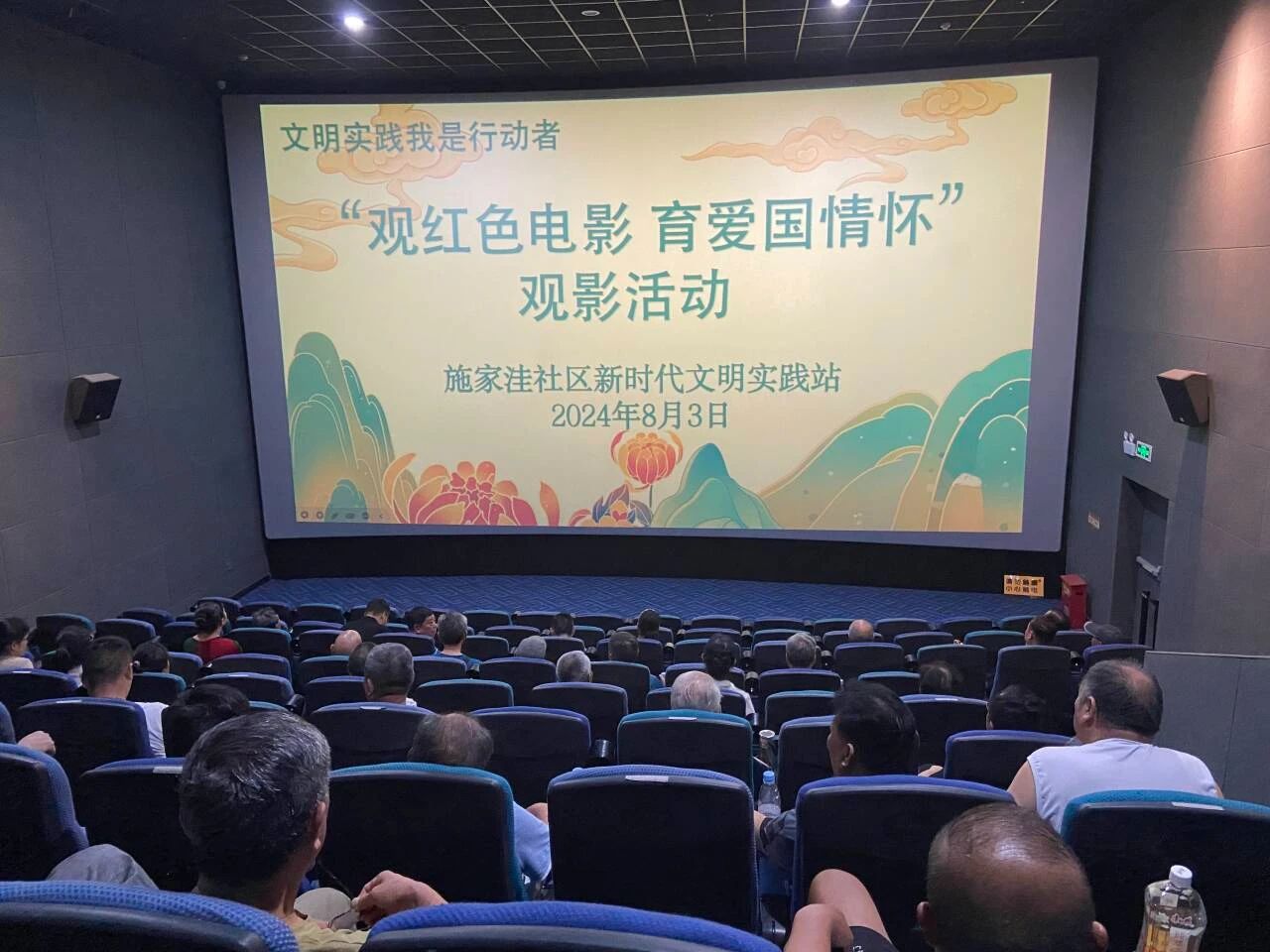 2024 年 8 月 3 日上午,由龍子湖區(qū)施家洼社區(qū)新時代文明實踐站承辦的“觀紅色電影,育愛國情懷”觀影活動在星潮影城有序開展,此次活動旨在通過加強愛國主義教育的同時豐富活躍社區(qū)居民的文化生活。