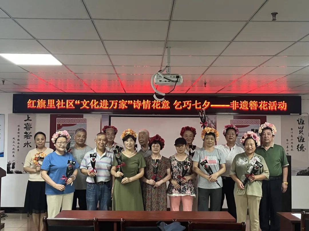 為引導轄區居民了解傳統節日,渲染節日氣氛,在傳統節日“七夕”到來之際,朝陽街道紅旗里社區新時代文明實踐站組織轄區黨員、居民老夫妻在社區多功能活動室開展“我們的節日·七夕”詩情花意,乞巧七夕——非遺簪花活動。