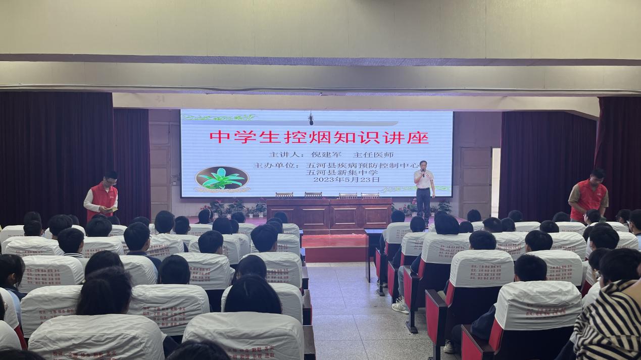 文明蚌埠網 今年5月31日是第36個世界無煙日,今年的活動主題是:無煙,為成長護航。為加快推進《健康中國行動(2019-2030年)》控煙行動實施,加強控煙政策和煙草危害等相關控煙知識宣傳,提高公眾尤其是學生這一特殊群體對煙草危害的認識,傳播文明健康生活方式。5月23日下午,五河縣疾控中心來到五河縣新集中學開展了控煙知識講座志愿服務活動。