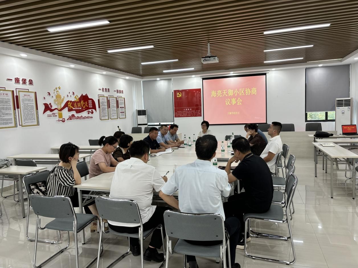 9月5日,蚌山區政協城建專委會聯合蚌山區物業辦、湖濱社區中心城管科及天御華府社區、海亮業主委員會、物業和小區居民代表在天御華府社區召開協商議事會,協商處理社區治理問題。趙曉彤 攝