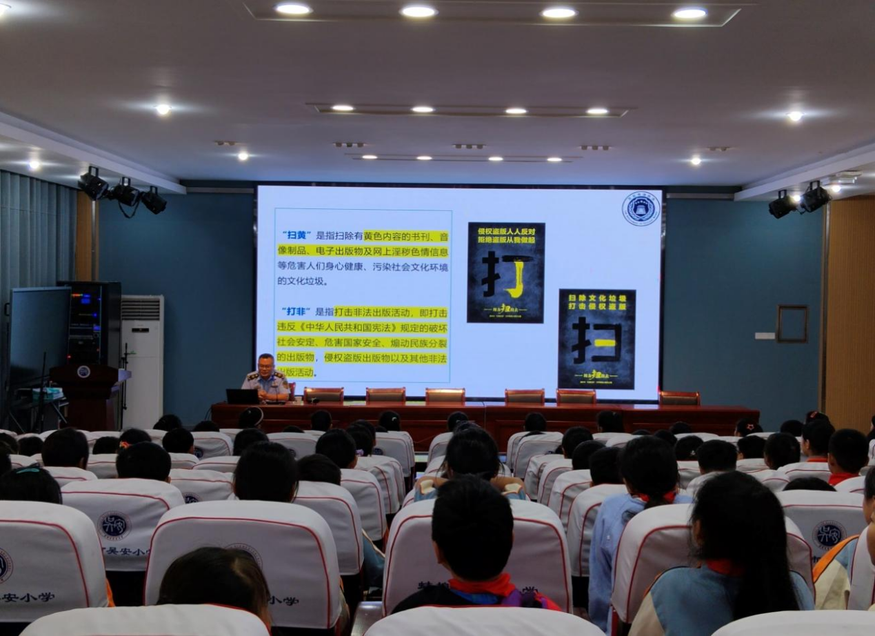 為筑牢未成年人身心健康的“保護網(wǎng)”,國慶前夕,蚌埠市淮上區(qū)“掃黃打非”辦邀請蚌埠市文化市場綜合行政執(zhí)法支隊三大隊大隊長魏廣鵬走進吳安小學(xué),開展“掃黃打非·護苗”宣講進校園活動,吳安小學(xué)中高年級師生代表參加。
