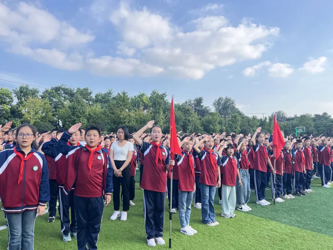 活動中,全體師生齊聚操場,伴隨著嘹亮的國歌聲,五星紅旗冉冉升起,映照著每一位少年的面龐。