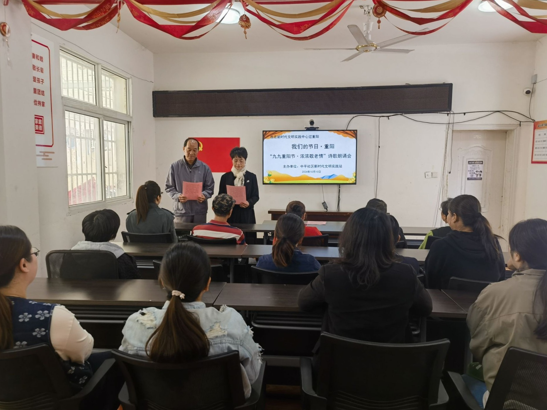 “歲歲重陽,今又重陽”,在這個充滿溫情與文化氛圍的節(jié)日里,中平社區(qū)10月10日上午舉辦了一場別開生面的重陽節(jié)經(jīng)典誦讀活動,為社區(qū)的老人們帶來了一場精彩的文化盛宴,也在社區(qū)中弘揚(yáng)了尊老、敬老、愛老的傳統(tǒng)美德,豐富社區(qū)老年人的精神文化生活。