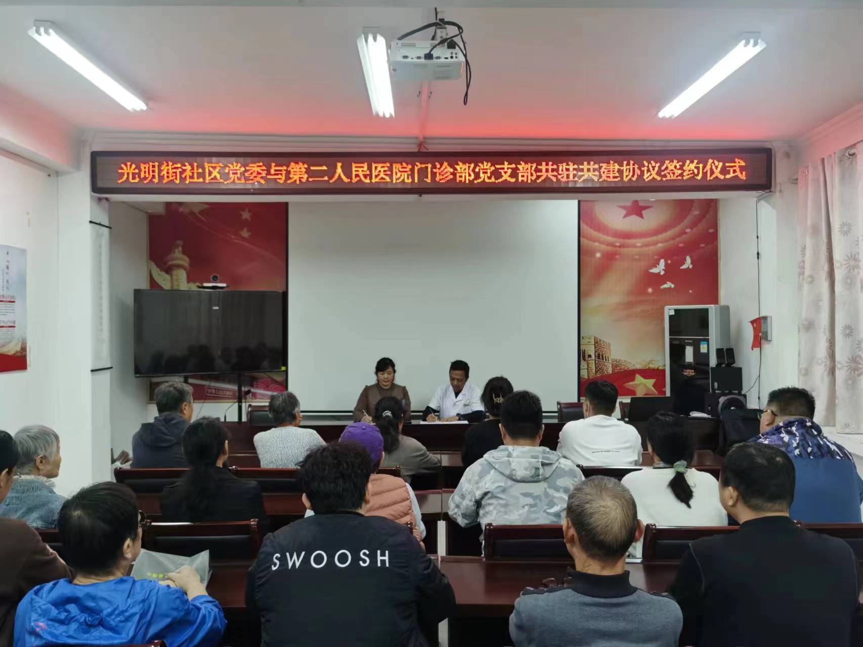 為進一步完善社區黨組織共駐共建機制,充分發揮黨組織核心作用,推動共駐共建工作,更好地服務社區居民。2024年10月10日光明街社區黨委與第二人民醫院門診部黨支部簽訂了共駐共建協議。