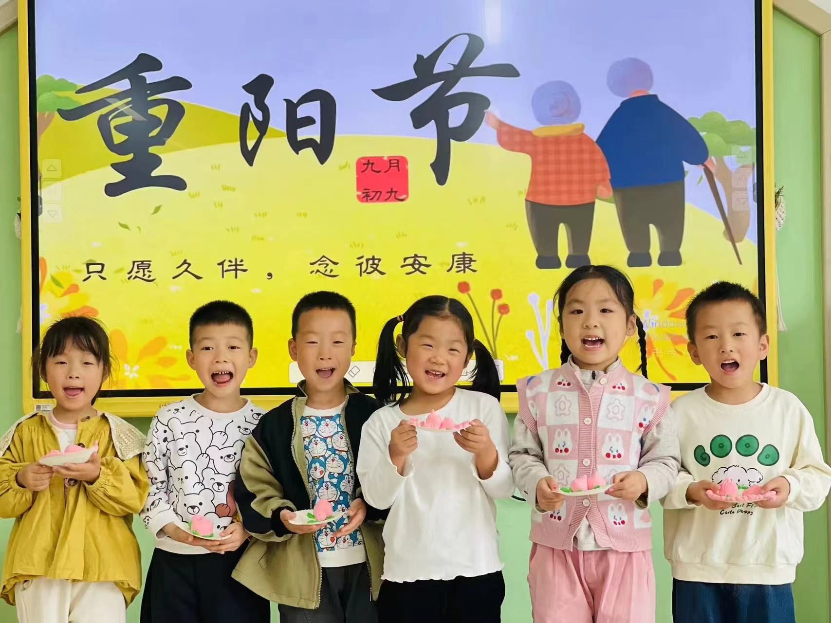 幼兒園內充滿了濃厚的節日氣氛。早晨,孩子們在教師的帶領下,通過多媒體教學、繪本分享等形式,了解了重陽節的由來及其背后的文化意義。老師們寓教于樂,通過互動問答等方式,讓孩子們認識到重陽節不僅是敬老的日子,更是表達對長輩尊敬與感恩之情的重要時刻。