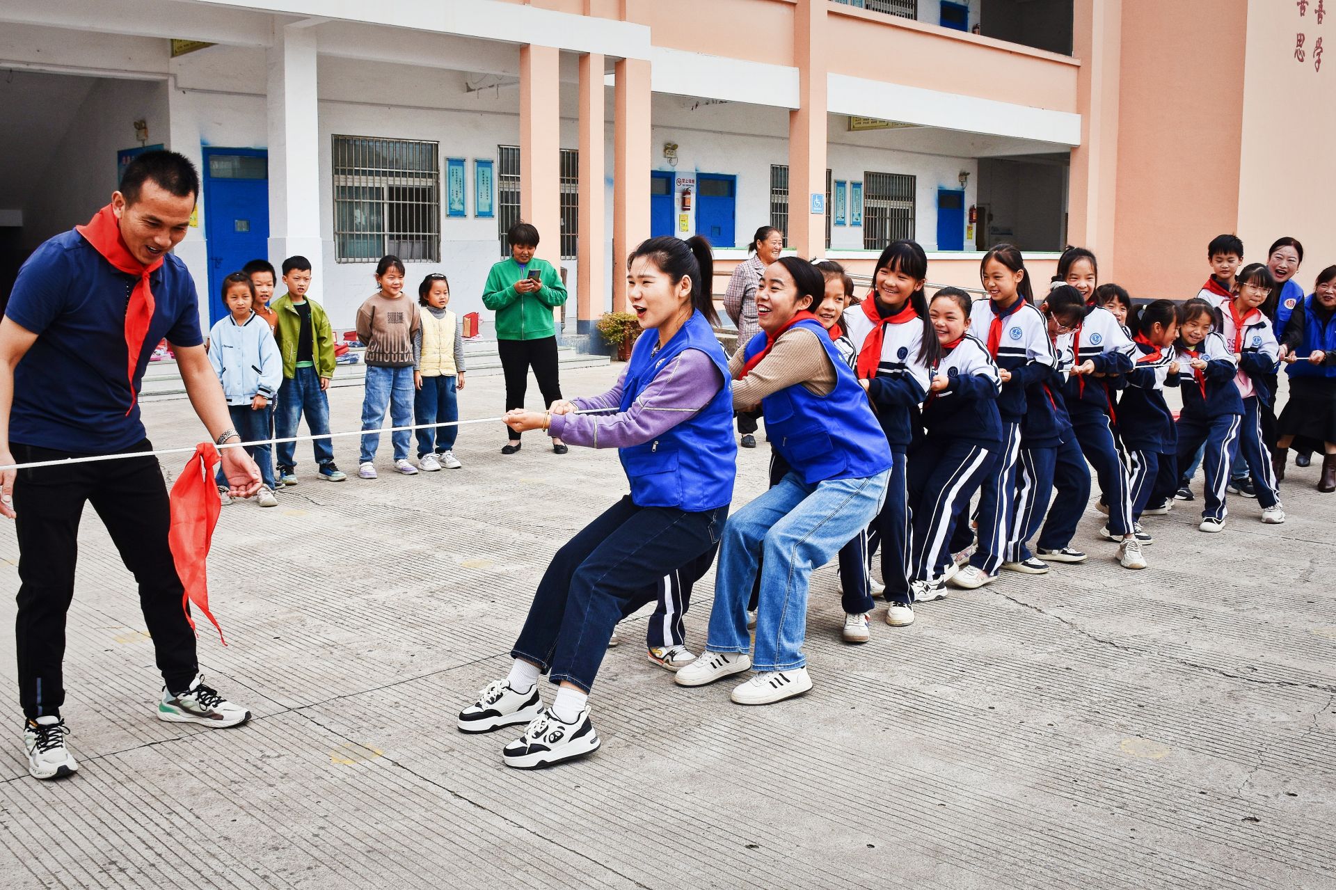 隨后,志愿者們陪伴孩子們一起玩起了老鷹捉小雞游戲和拔河比賽。校園里充滿了歡聲笑語(yǔ),孩子們?cè)谟螒蛑斜M情釋放著童真和活力。老鷹捉小雞游戲中,孩子們你追我趕,笑聲回蕩在校園的每一個(gè)角落;拔河比賽中,孩子們齊心協(xié)力,為了團(tuán)隊(duì)的榮譽(yù)而努力拼搏。這些游戲不僅增進(jìn)了孩子們之間的友誼,也讓他們感受到了團(tuán)結(jié)的力量。