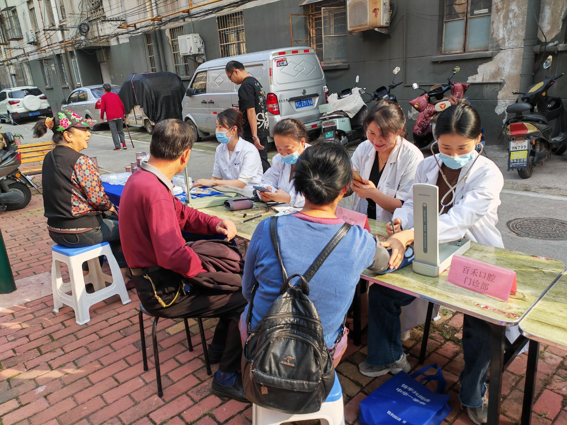 10月11日,勝利街道建筑一村社區開展“情暖重陽節 敬老送健康”新時代文明實踐活動。活動中,醫護人員為現場的居民進行測量血壓等常規檢查,理發師為老人們提供免費理發服務。