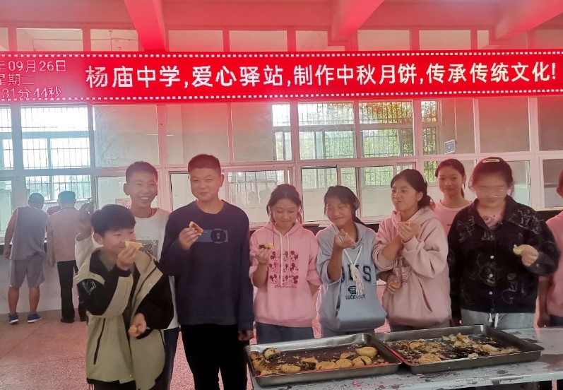 當天,固鎮(zhèn)縣楊廟中學愛心驛站組織專業(yè)面點師傅指導參加活動的學生制作中秋月餅。活動現(xiàn)場,學生們劃分隊伍開展“做月餅、獻愛心”比賽,大家動作嫻熟,制作的月餅越來越多,食堂的師傅們及時將月餅烤制出爐,并拿出一部分供大家品嘗,美食添技能。這既是一次文化教育實踐;也是一次勞動教育實踐,師生融融話中秋。