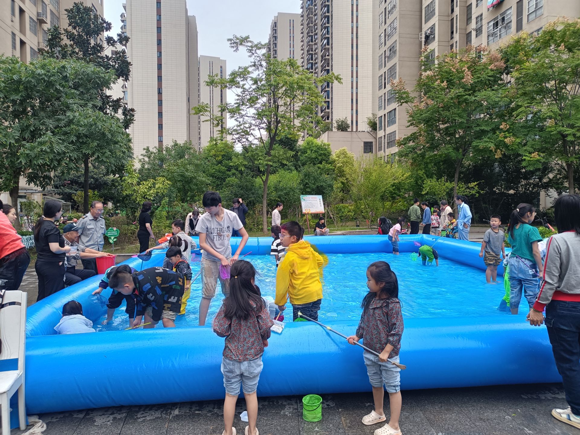 活動(dòng)中,孩子們紛紛跳下泳池,盡情地與水為伴,靈活地在水中捉魚,大家開心的展示著自己的“戰(zhàn)利品”,互相交流自己的捉魚技能。平常不熟悉的鄰里紛紛開始合作,一起“活捉”魚兒,一個(gè)負(fù)責(zé)下水撈魚,一個(gè)在岸邊搖旗吶喊用桶接住隊(duì)友的勞動(dòng)成果。活動(dòng)結(jié)束后摸到的魚都可以拿回家。除了摸魚活動(dòng)外,免費(fèi)吃月餅,理發(fā)、磨刀、測(cè)血糖量血壓、垃圾分類和防盜防騙宣傳等各種公益志愿服務(wù)應(yīng)有盡有。