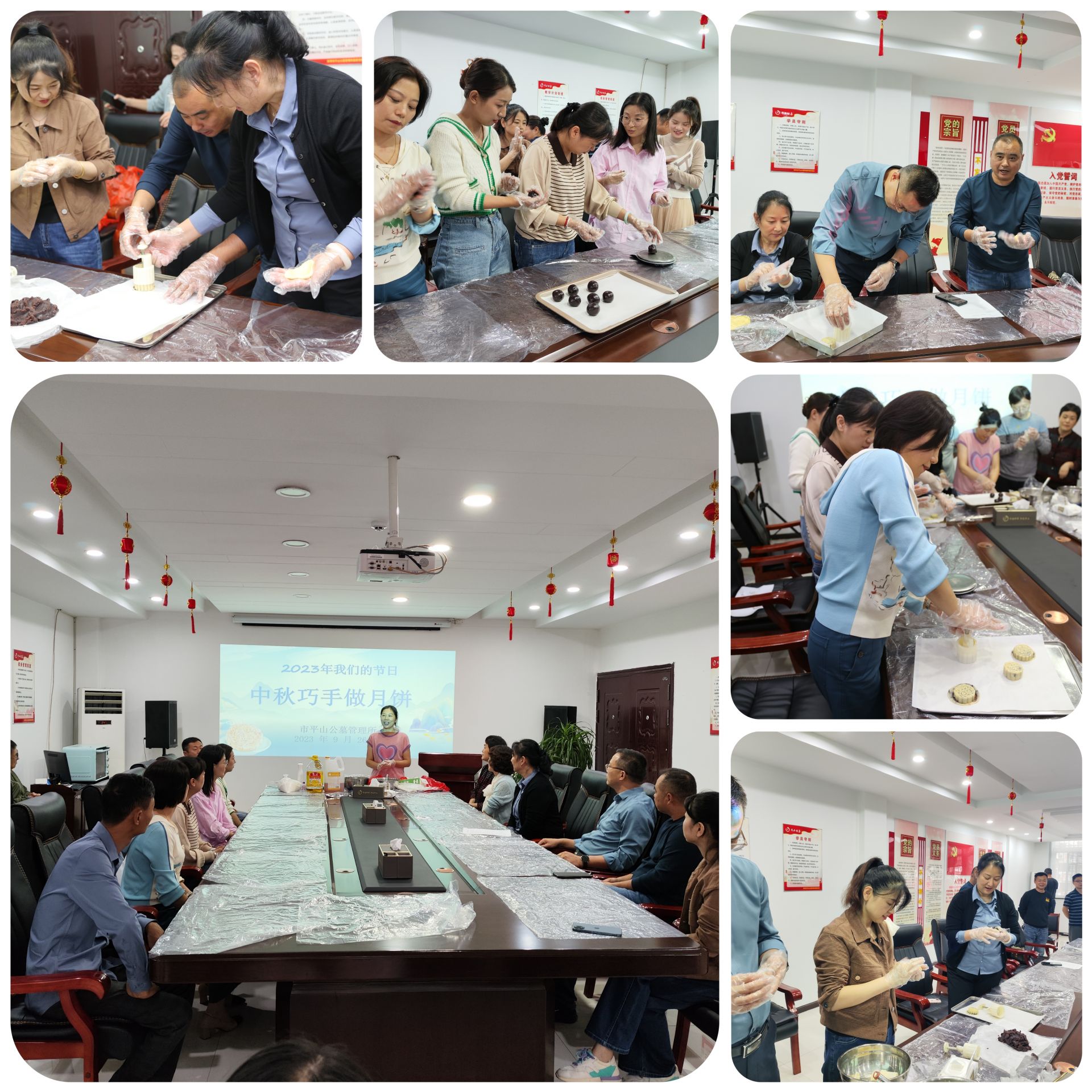 活動現場,烘焙老師手把手教學月餅制作技藝,調制餡料、加料和面、稱重搓揉、包月餅皮、模具壓制、入箱烘烤,在一片歡聲笑語中,一個個印著闔家歡樂、花好月圓的甜蜜月餅被制作完成。通過講述中秋節的來歷、中秋傳統習俗和月餅的含義,分享中秋佳節的歷史小故事以及趣味小游戲等活動,傳播中華傳統文化的同時,豐富了職工精神文化生活,增強團隊凝聚力、戰斗力,積極營造濃郁溫馨、團結和諧的節日氛圍,讓全所職工們真正感受到了來自平山大家庭的關愛和溫暖。(王俊付、楊雪雅)