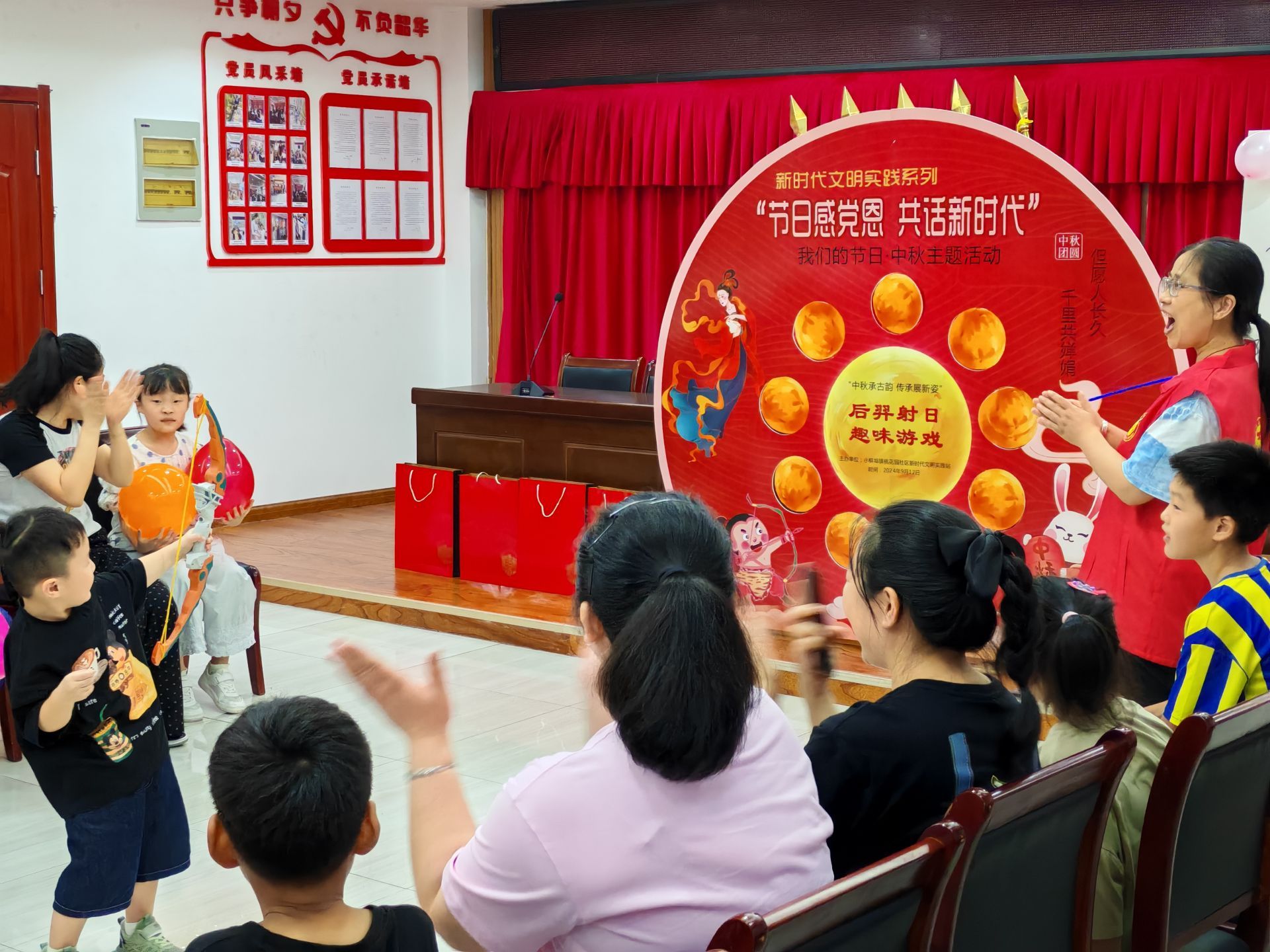濃情九月,歡樂中秋。為傳承和弘揚優(yōu)秀傳統(tǒng)文化,進一步豐富群眾精神文化生活,9月12日,桃花園社區(qū)新時代文明實踐站開展“節(jié)日感黨恩 共話新時代”我們的節(jié)日·中秋主題活動,邀請家長和孩子一起參加趣味游戲,共享團圓美好時光。