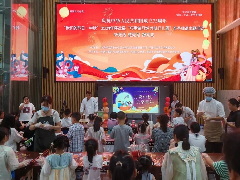 為積極培育和踐行社會主義核心價值觀,大力弘揚中華民族傳統(tǒng)節(jié)日和優(yōu)秀文化,讓少年兒童充分感受中華文化魅力,豐富精神文化生活,9月15日下午,由中共懷遠縣委宣傳部、懷遠縣文化旅游體育局、懷遠縣文學藝術界聯(lián)合會主辦;懷遠縣新時代文明實踐中心、懷遠縣文化館、懷遠縣引鳳街道屾河社區(qū)居委會承辦的 “我們的節(jié)日·中秋”2024年懷遠縣“巧手做月餅 共赴月兒圓”親子非遺主題活動在縣文化館舉行。