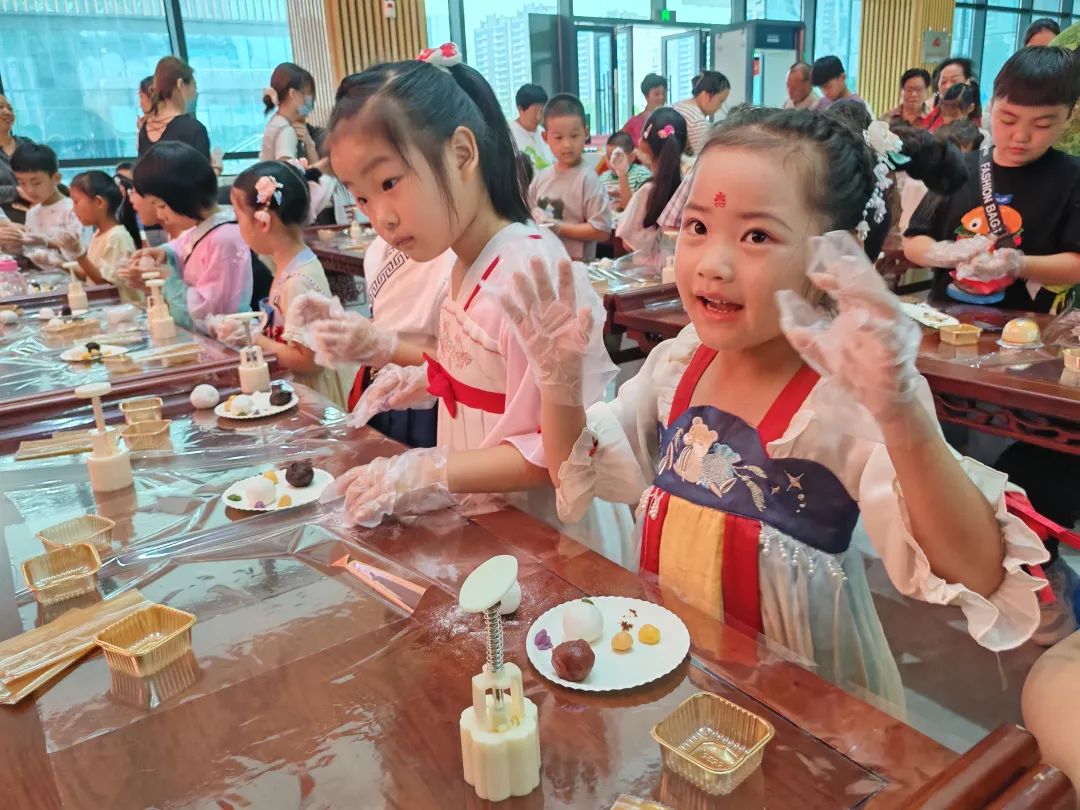 隨后來到了月餅制作環(huán)節(jié),在孩子們靈巧的雙手下,月餅個個圓潤飽滿。