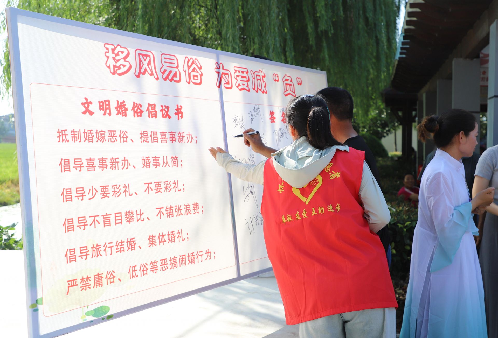 月下老人被民間稱之為紅媒,就是牽手姻緣,讓有情人終成眷屬。在這個中秋佳節的日子里,該鎮還開展了“抵制高價彩禮,守護幸福婚姻”簽名活動,那些情竇初開、進入婚姻年齡段的青年男女和他們的父母紛紛簽名,支持移風易俗,抵制高價彩禮,追求幸福婚姻,這不僅是神話中月老的心愿,更是新時代青年嶄新的精神風貌。