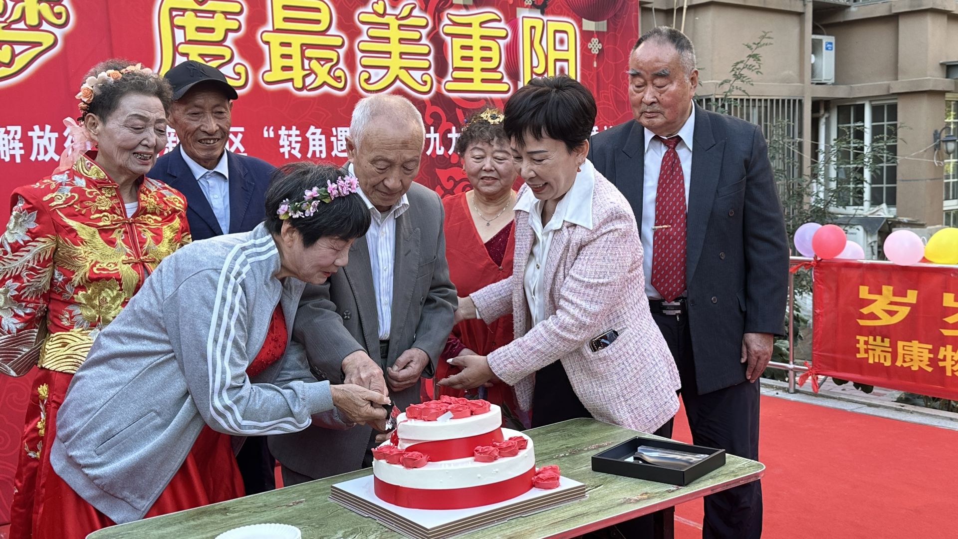 蚌埠文明網訊(融媒體記者 何沛 文/圖)最讓人羨慕的愛情莫過于牽著彼此的手,從青絲到白發,一起去看日升日落,云卷云舒。10月20日下午,由龍子湖區民政局聯合建新社區舉辦的“圓芳華之夢 度最美重陽”龍子湖區“轉角遇到愛”九九重陽銀發集體婚禮在解放街道建新社區新時代文化長廊舉行。10對銀發夫婦攜手相伴,以愛之名,在眾人的見證下“完婚”,不僅大聲說出愛的“告白”,重溫愛的浪漫,更用實際行動踐行移風易俗。