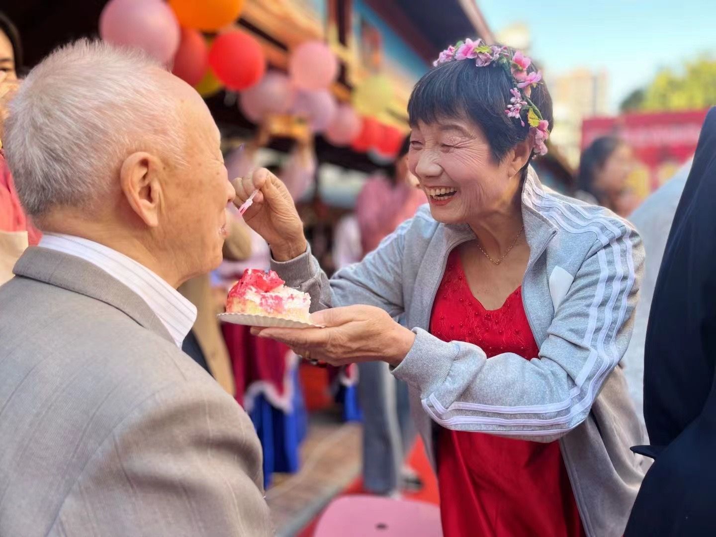 在這個特殊的日子里,83歲的老人方新生看著與自己并肩走過50余年的愛人穿上新娘服時,“新郎”回憶起青春往事。他告訴記者,自己和愛人結婚時,沒有熱鬧的儀式和蜜月,就牽著手走進了養兒育女的婚姻生活。“今天的活動很隆重,也很高興,算是彌補了當初的一個遺憾。”他滿懷感激地說。