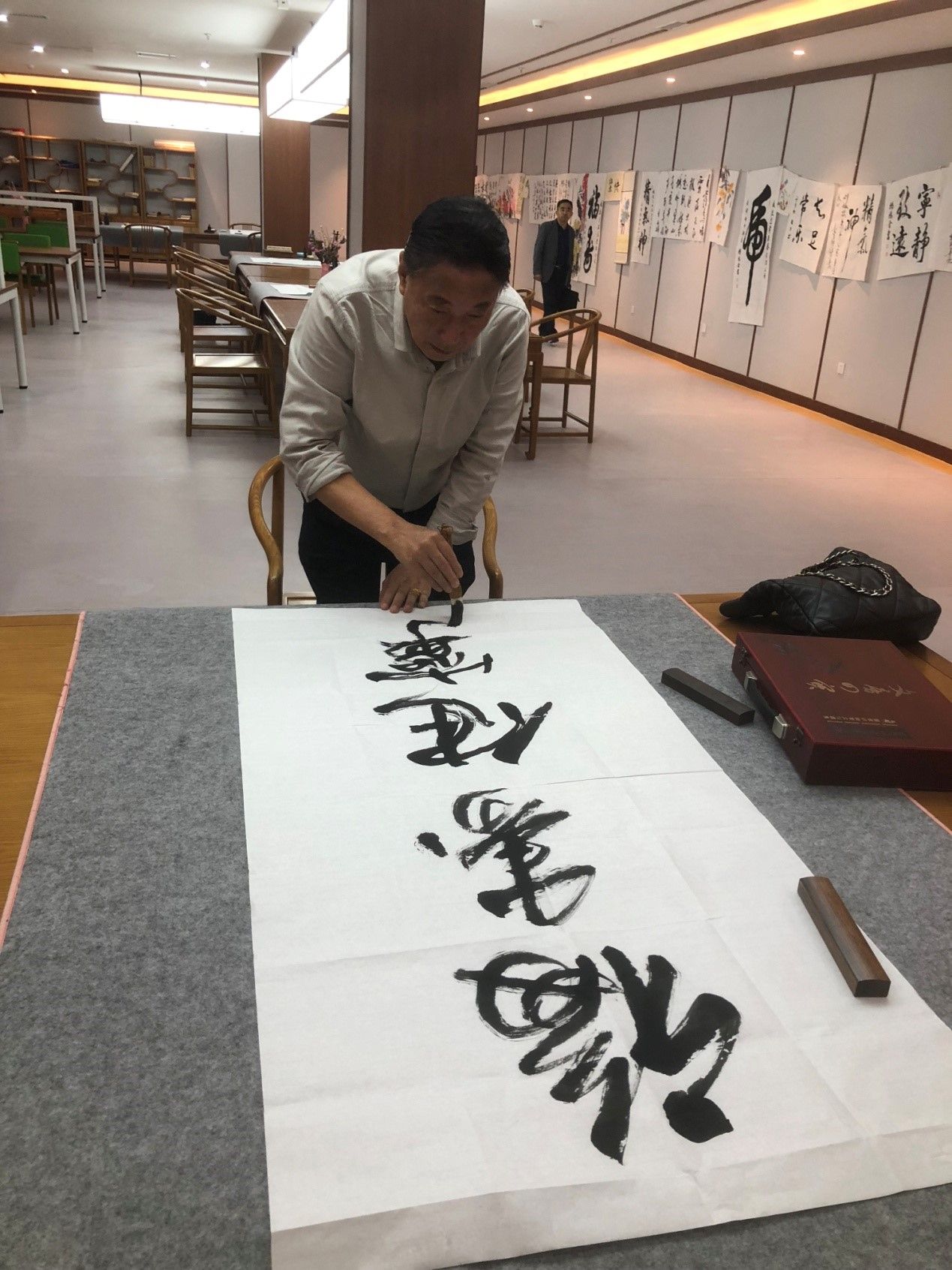 退休返滬人員在康養(yǎng)中心書畫室現場潑墨揮毫