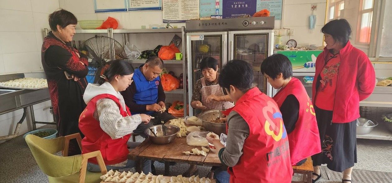 鎮婦聯、團委、社工站、綜合文化服務中心的志愿者們顧不上觀看精神的文藝節目,從早上9點便開始動手包起了餃子。實在的“肉團”裹上厚實的餃皮,一個個濃情的餃子整齊的擺上的案板。這邊文藝演出一結束,在院的老人們邊吃上的熱氣騰騰的餃子,看著老人們吃的津津有味,志愿者們忘記了勞累。(丁會平)
