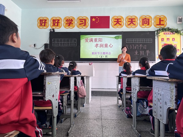 各班通過召開主題班會,讓同學們了解了重陽節的由來、風俗習慣和節日意義。除此之外,還教育培養孩子敬老、愛老、助老的美德。并用自己力所能及的方式表達對爺爺、奶奶或外公、外婆等老人的關心和愛護,培養尊老、敬老的良好品質。
