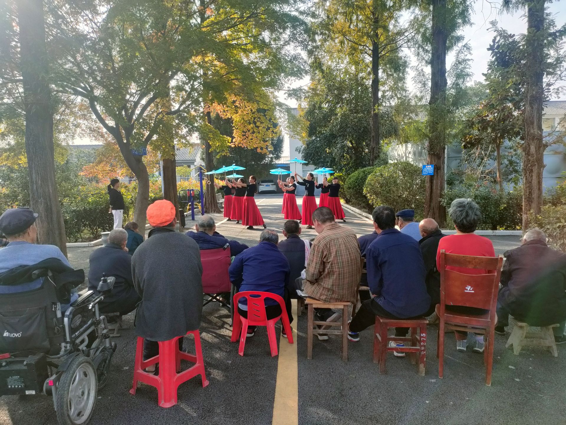 活動現(xiàn)場,文藝志愿者們?yōu)槔先藗儽硌萘司臏?zhǔn)備的舞蹈《唱支山歌給黨聽》《又見江南雨》《摘石榴》等近十個節(jié)目。歡快的舞蹈贏得老人的陣陣掌聲。